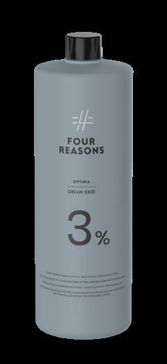Four Reasons Optima Clear Booster vahvistaa Four Reasons Optima -värin vaalennustehoa ja tasoittaa tummuuseroja aiemmin värjätyssä hiuksessa sekä tehostaa hiusvärin peittokykyä vastustuskykyisessä hiuksessa, esim. harmaanpeitossa. Voit käyttää sitä myös yksinään kirkastamaan värjättyä hiusta kevyesti ilman vaalennusväriä tai -ainetta. Soveltuu kaikkien muiden Four Reasons Optima -sävyjen kanssa käytettäväksi, paitsi 11-sarjan.