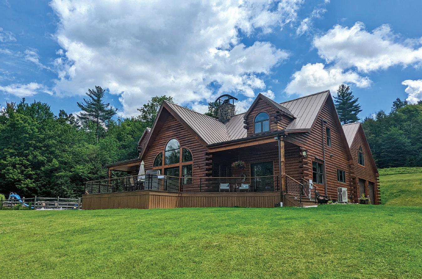 2731 COLLINS ROAD WHITINGHAM, VT Custom Log home situated on 17 acres with magnificent exterior stone work creating a firepit area and patio with pergola. Step onto the open front porch through the mudroom or enter directly through the two car heated garage into a well appointed home. Large open kitchen, living and dining room with wood burning stove, fully finished walk-out basement offers additional living and sleeping area. Just off the living room is additional outdoor space for grilling and dining. $1,295,000 | Betsy Wadsworth | 802.579.8689