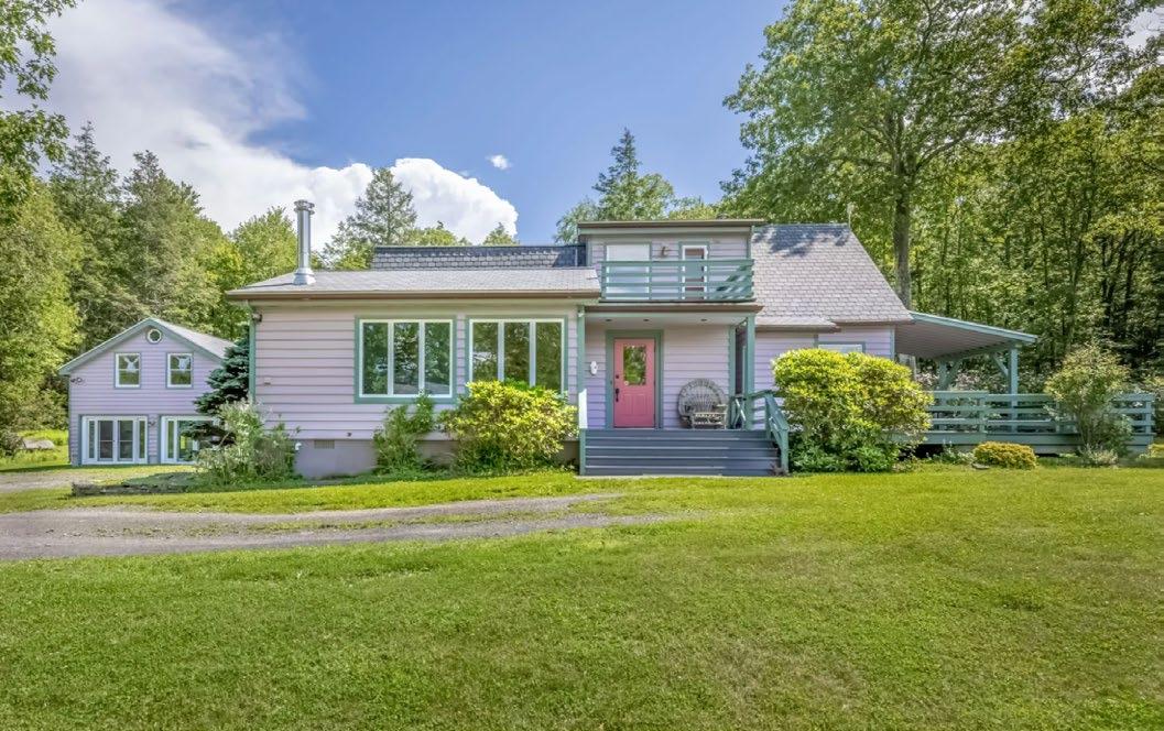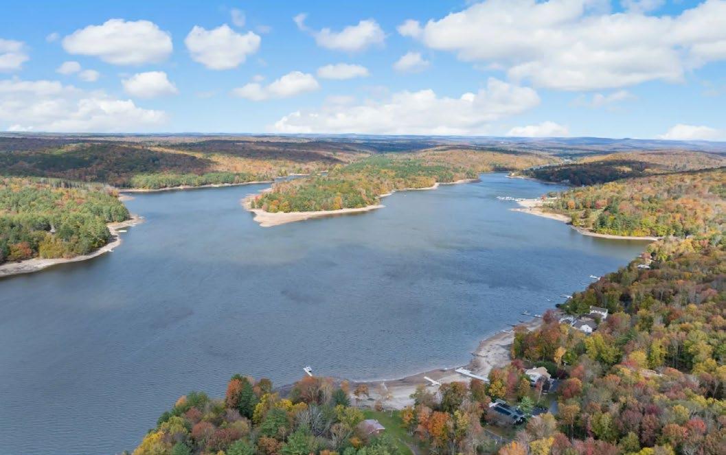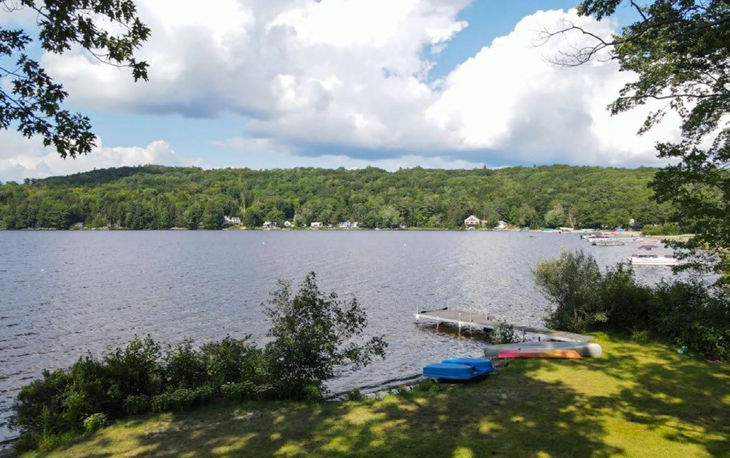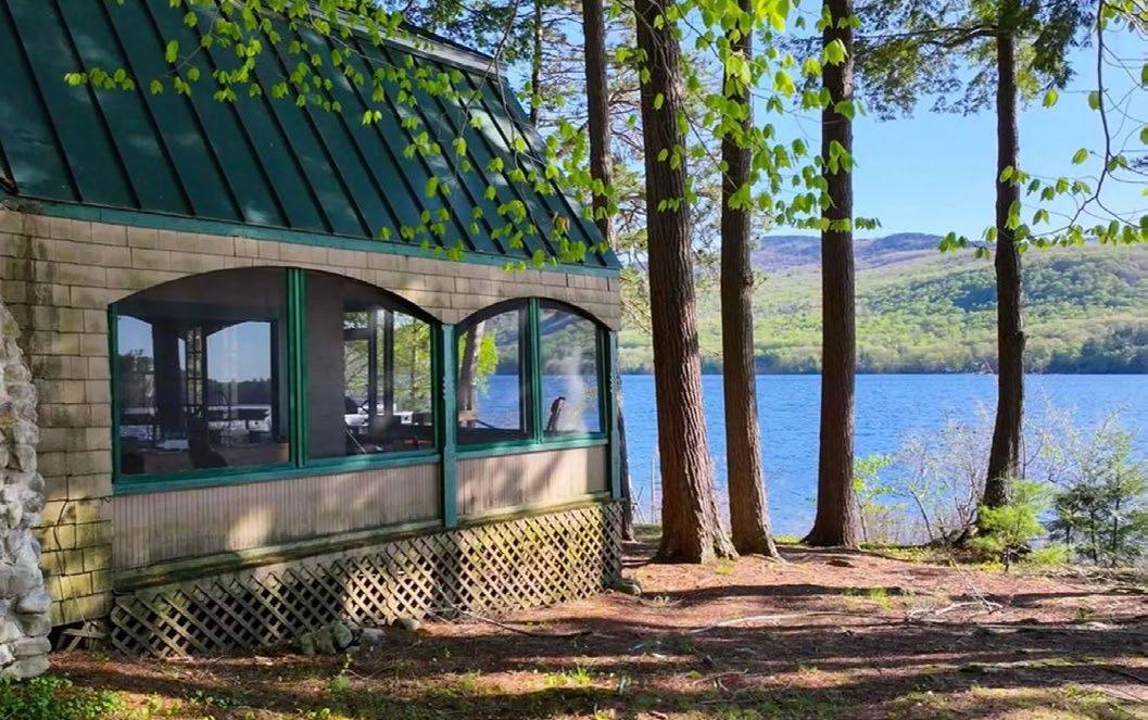 Highland Lake is one of those hidden gems nestled within a ring of mountains and hills that once you have experienced it - you will never want to leave. This family compound with one waterfront home just steps from the water also includes a guest house, and both are set at the end of a town maintained road in the very middle of the westside shoreline. There is not a moment of any day that does not wow with breathtaking sunrises and stunning sunsets or even rainbows. The main home consists of 4 BR and 3 BA with a lower level family room with a walk out through French doors to the level lawn. The main level offers expansive scenic lake views from the open concept living room, dining room, eat in kitchen, 3 season porch and deck. There are so many places to experience the day whether out in the boat, lazing in the hammock, gardening, blueberry picking right from the dock, sunrise breakfast on the deck or dinner on the lakeside lawn with waves practically lapping at your feet.