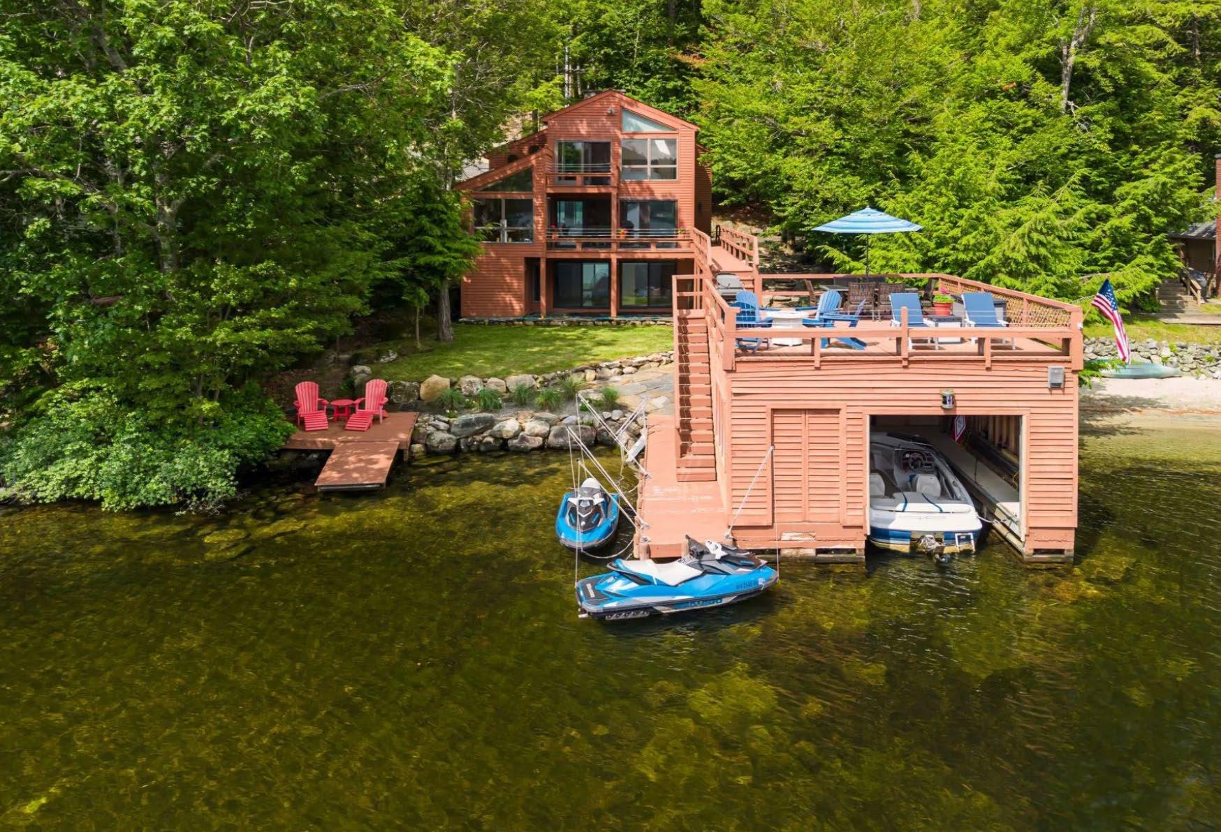 Nestled within the gated community of Grouse Point Club, this exceptional lake view residence offers an opportunity to become part of one of Lake Winnipesaukee’s most coveted private associations. Perched above the water with commanding panoramic, southerly views over Winnipesaukee, this custom-built home, on the market for the first time since its 2000 construction, was thoughtfully designed to celebrate its extraordinary natural setting. The main level features a spacious family and dining room that opens to an expansive front deck, creating an ideal indoor-outdoor flow for entertaining or simply soaking in the ever-changing lake vistas.
