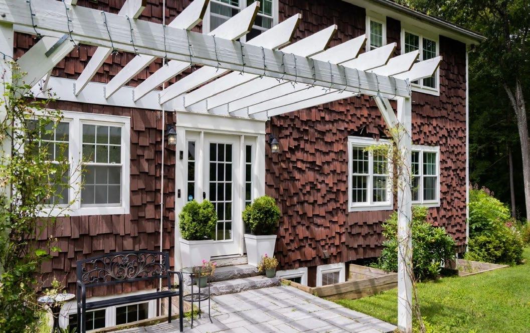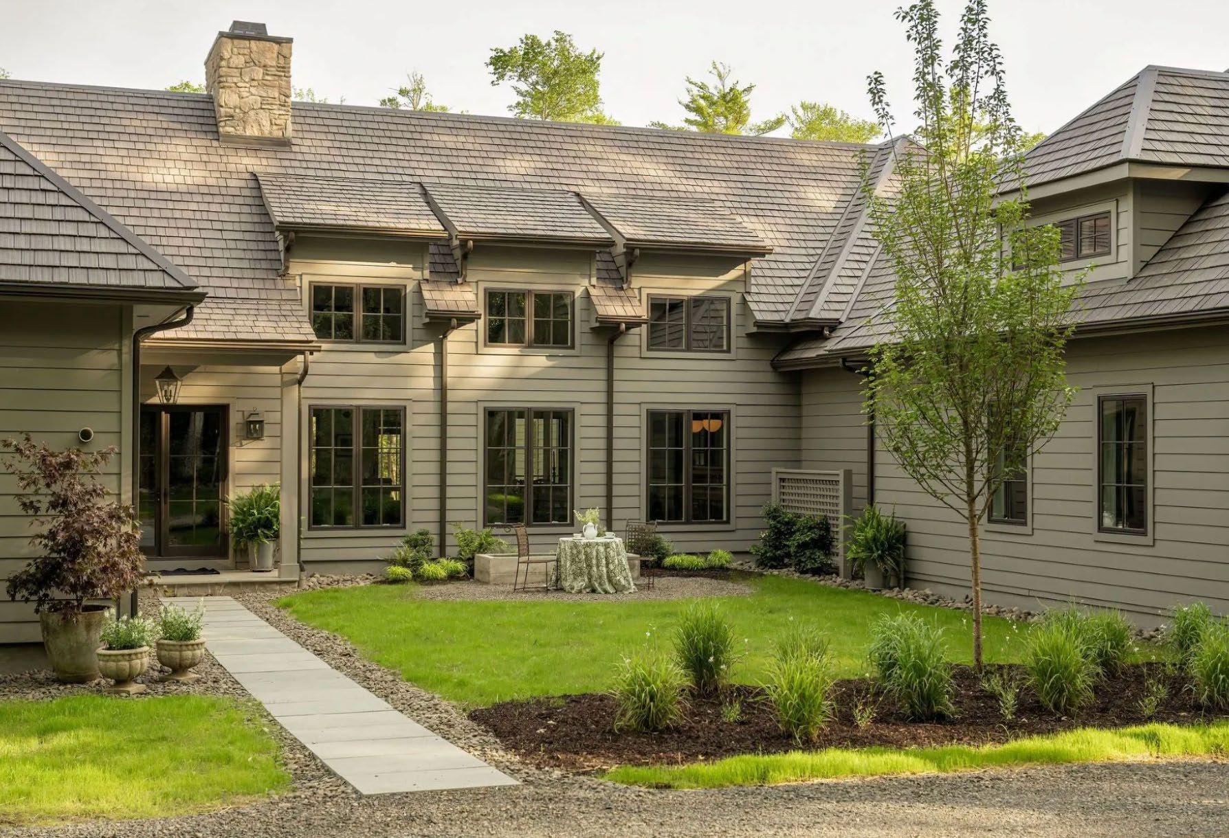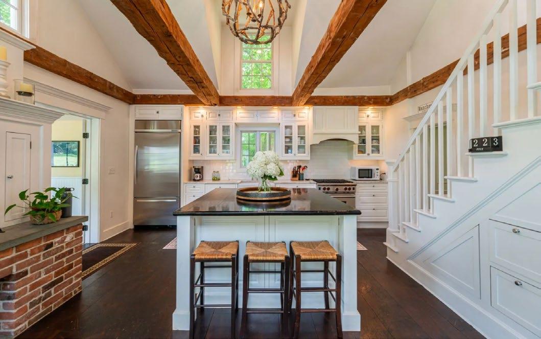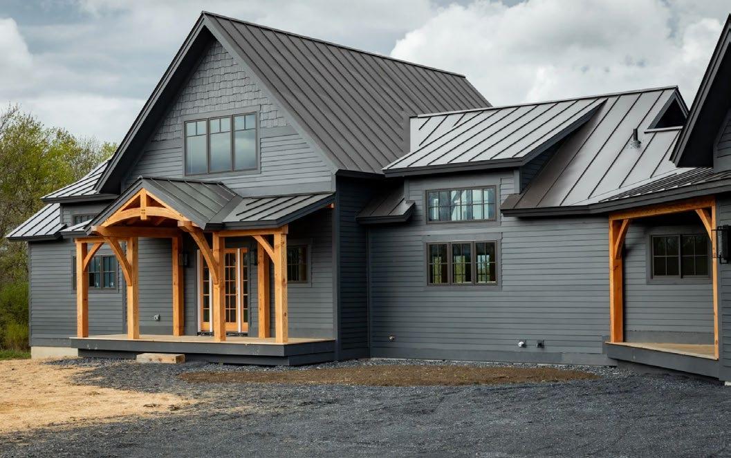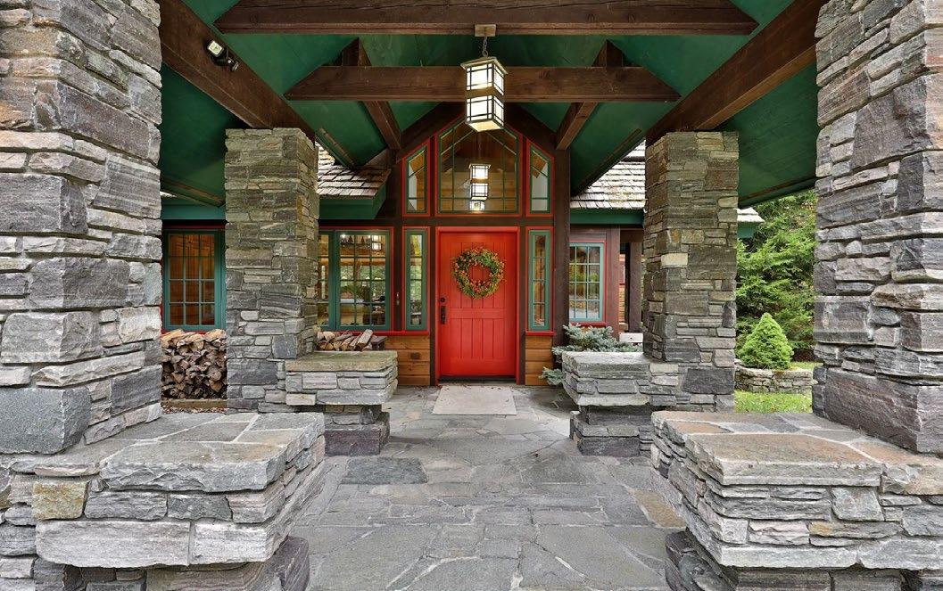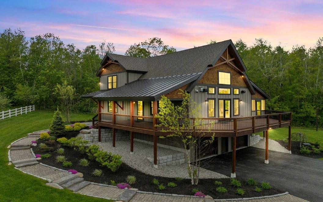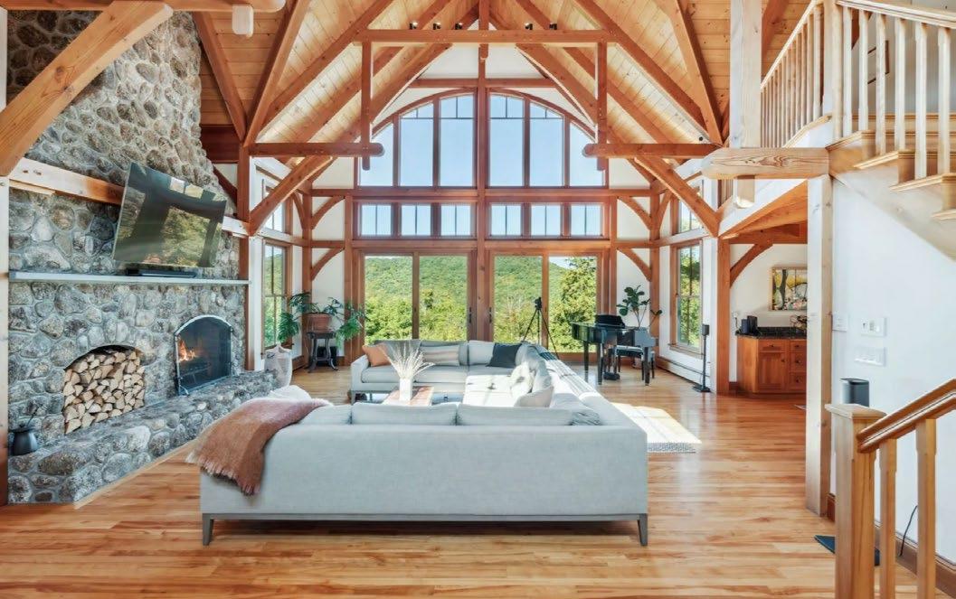 Set atop a scenic Vermont hillside, this five-bedroom custom-built home by The Wadsworth Design Build/ Vermont Barns is a stunning example of craftsmanship blended with modern luxury. Timber-framed architecture, this four-bedroom, six-bath estate offers a warm, rustic elegance that embraces its natural surroundings. Just a short drive from Stratton and Mount Snow ski resorts, it is the ultimate retreat. The moment you arrive; the home’s striking presence is undeniable. A porte-cochère welcomes you, setting the tone for the beauty that lies within.