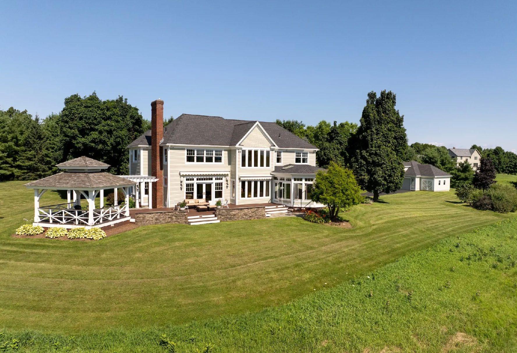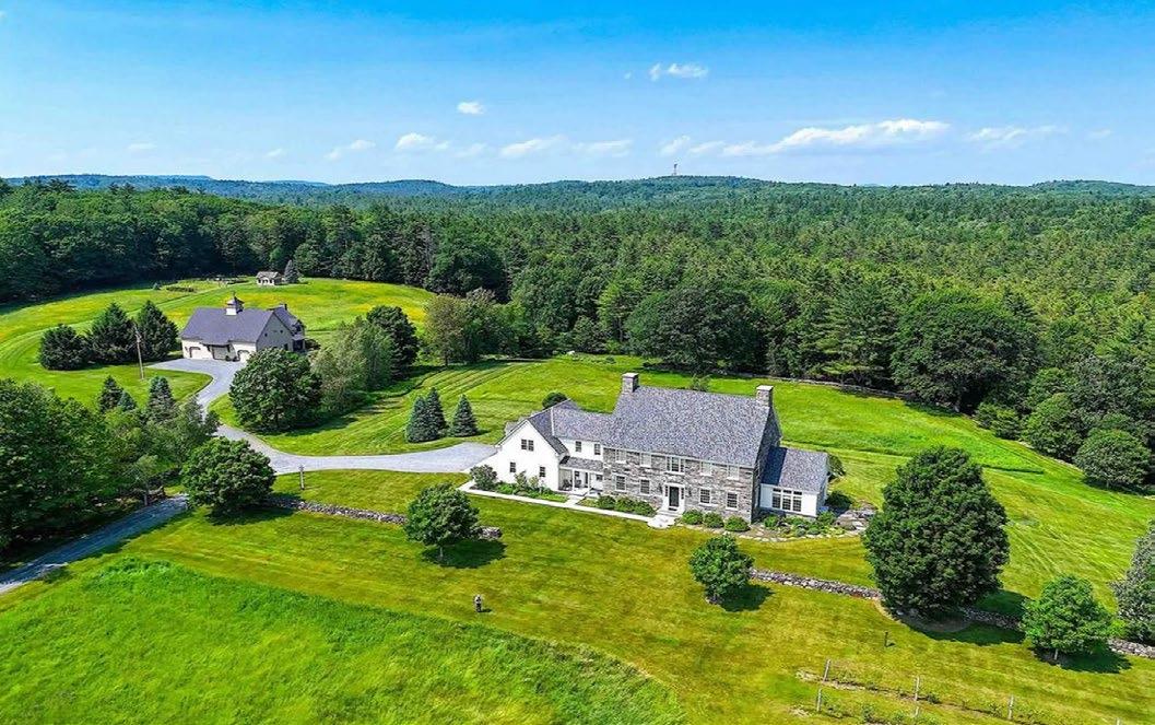 Offered for the first time, this custom-built 3-bedroom, 4-bath residence is privately sited at the end of a treelined drive on nearly 10 acres of manicured grounds, meadows, and woodland in a cherished location in Keene. With enduring quality and craftsmanship, the home features a light-filled layout with soaring ceilings, custom millwork, and a seamless flow between spaces. The gourmet kitchen boasts stone counters, a gas cooktop, custom cabinetry, and a large pantry, opening to formal and informal rooms ideal for both quiet living and entertaining with ease. The vaulted living room centers around a stately fireplace, and a tiled sunroom offers garden views and abundant morning light. The first-floor primary suite has a luxurious bath, walk-in closet, and tranquil views. Upstairs includes a library with built-ins, two guest bedrooms, and a full bathroom.