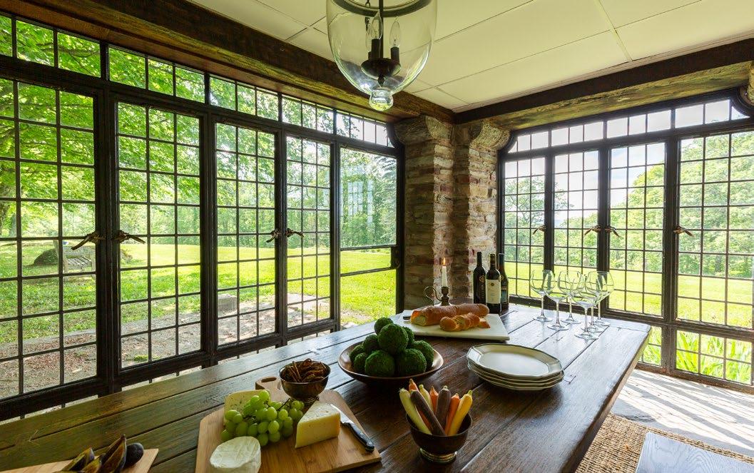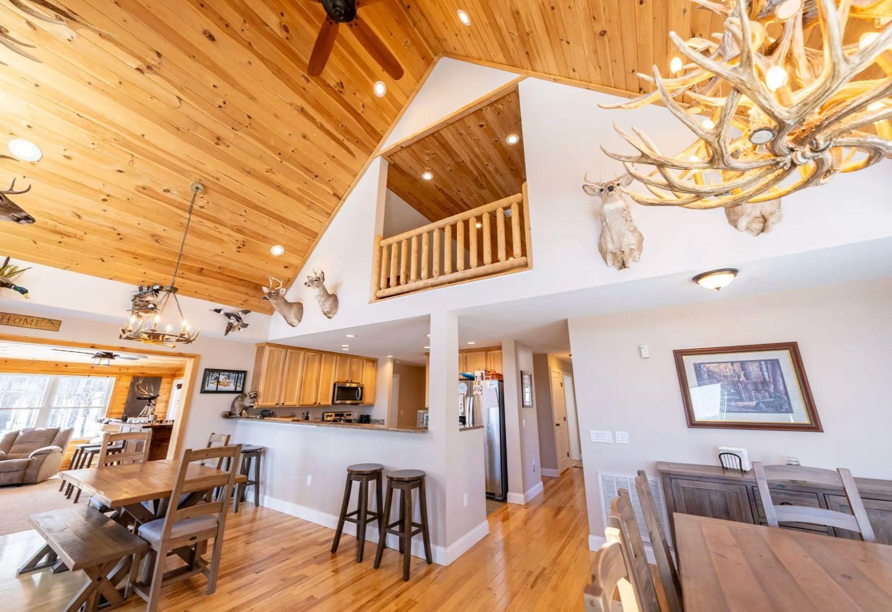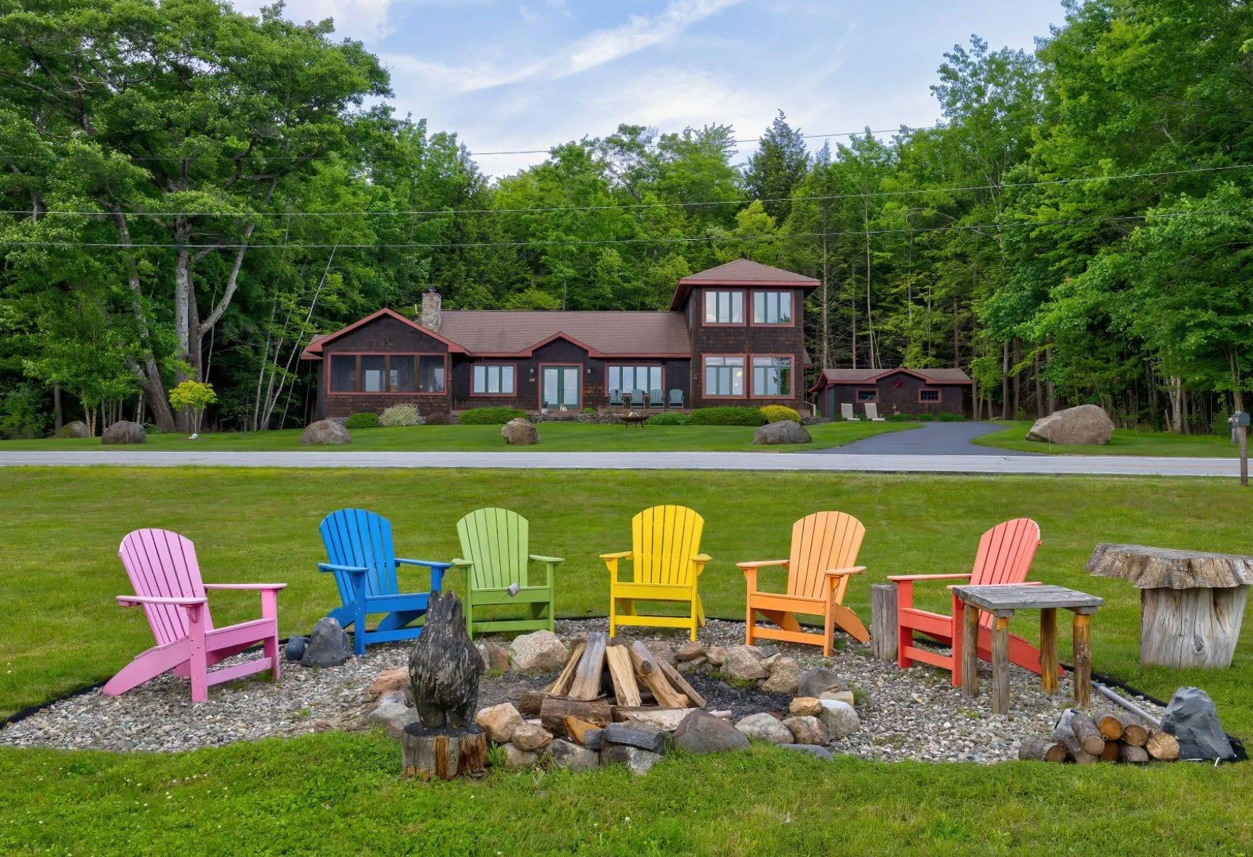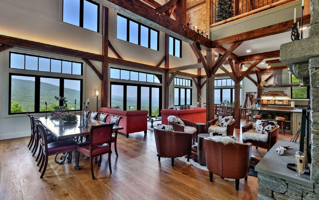 Escape to Moosewalk Lane, a fully furnished and equipped luxury estate in Andover, Vermont, set on 384 acres in the iconic Green Mountains. This one of a kind property offers a rare blend of seclusion, natural beauty, and timeless craftsmanship. The custom built 10,062 square foot main house features an expansive open concept design. Crafted with post and beam timber frame construction, the soaring 2 story great room includes a dramatic stone fireplace and a chef’s kitchen with double appliances, a Viking 60 inch cooktop, and a wood fired pizza oven.
