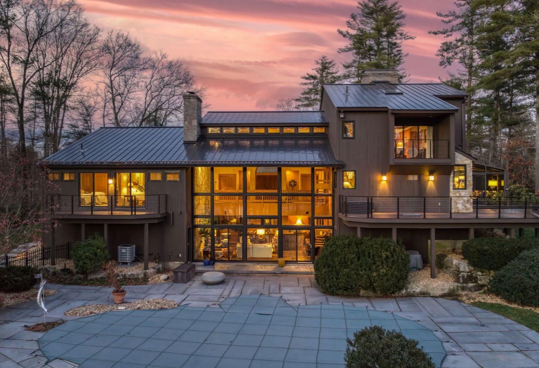 Wild Trails Farm offers unparalleled privacy, encompassing 436 acres of natural splendor. At the heart of this retreat is a 5,600+ sq ft lodge that is both luxurious and eco-friendly, powered by solar and geothermal. It features 6 spacious bedrooms, 4.5 bathrooms, a gourmet kitchen with dual dining areas, common rooms, and sauna. The 2-car garage is currently utilized as a yoga studio, but could be easily converted back. Whether you are relaxing on the stone patio with sweeping southern views or enjoying the cozy screened-in rear porch, you will find the perfect spot to savor the tranquil surroundings.