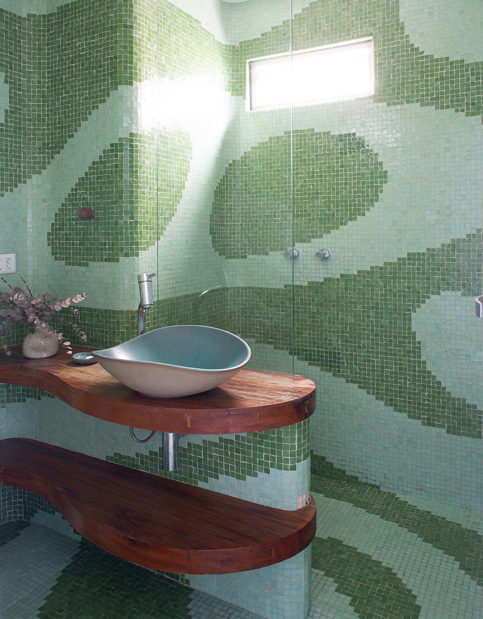 Colorful tiles decorate Ernesto Neto’s bathroom, which also has ceramics by Regina Kemp. Photograph: © Jean-François Jaussaud.All artworks by Ernesto Neto, courtesy of the artist.