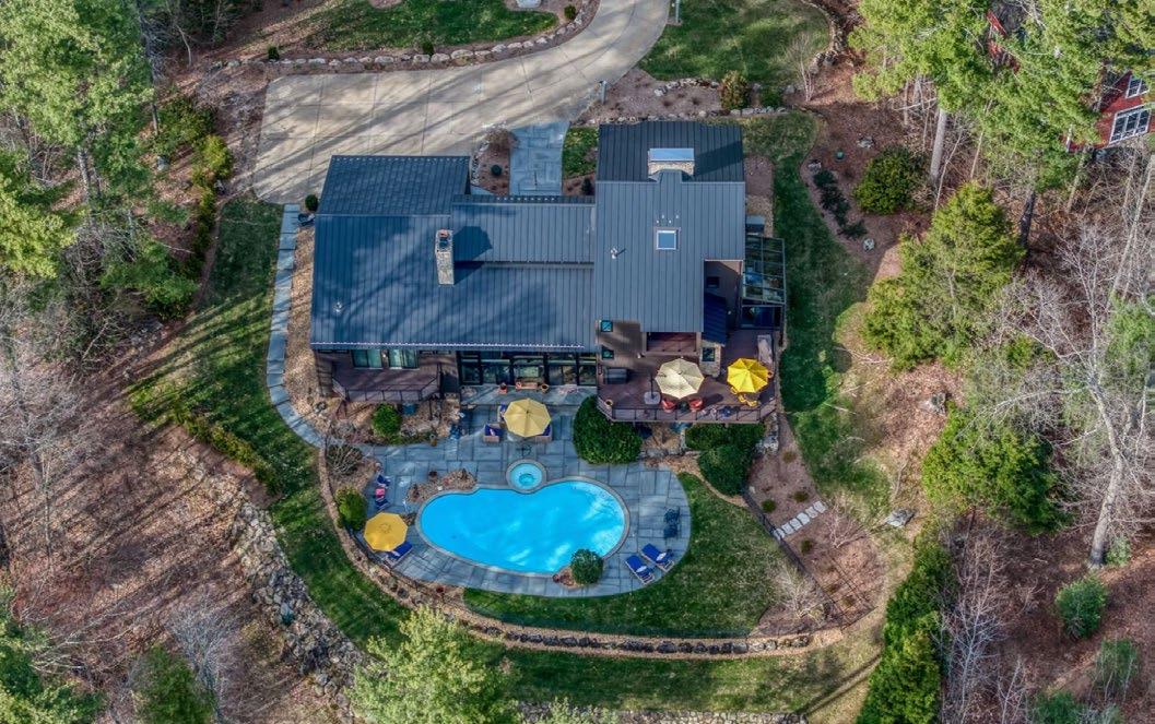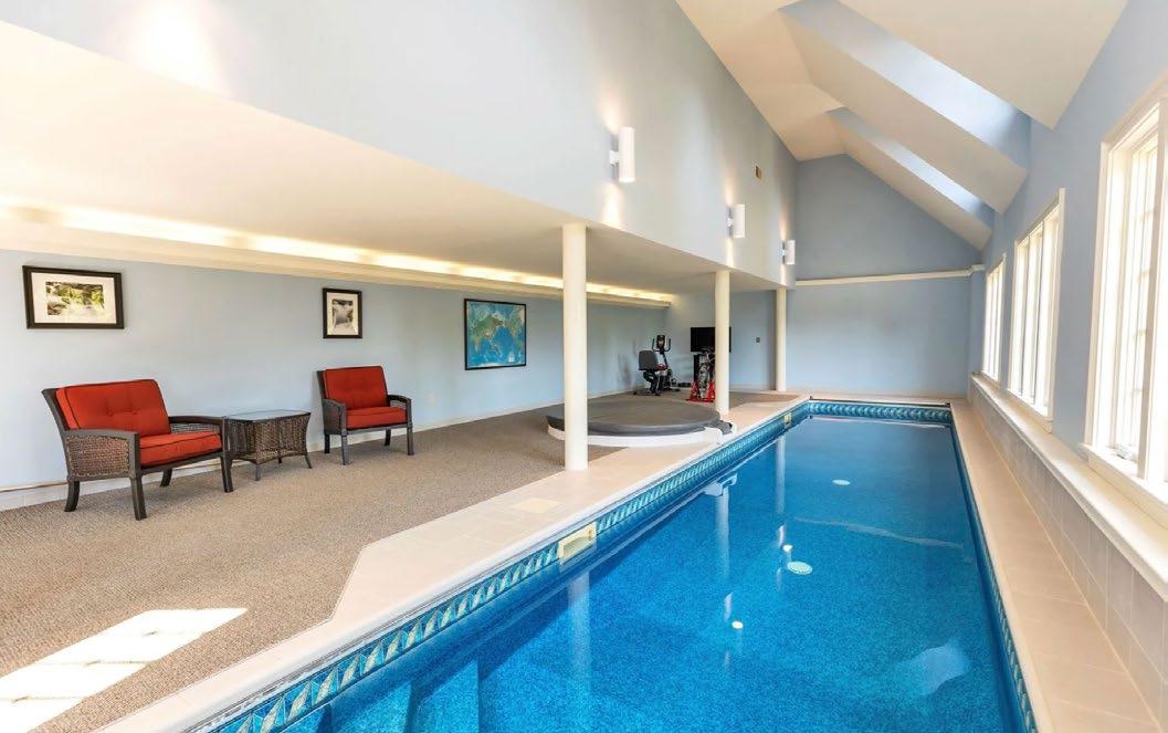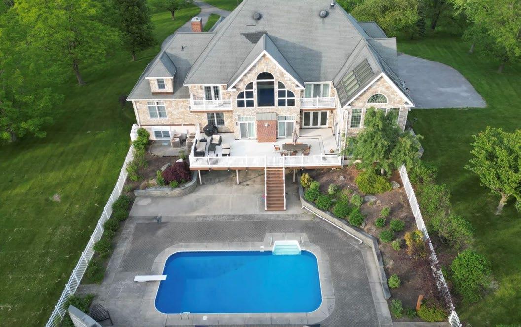 Experience a home of distinction & luxury living: This exceptional 6,027 sq ft Contemporary Estate home, on 2.95 acres with tranquil Jenkins Pond frontage and a sparkling saltwater pool -is a private oasis perfect for both relaxation and recreation. From the grand entrance, step into a dramatic foyer and prepare to be captivated by dynamic views and the 30 x 30 ft floor-to-ceiling windows. The great room walkout to the pool and patio areas is an entertainer’s dream, featuring a striking 30-foot mosaic granite fireplace, a granite-topped bar, and soaring ceiling, plus it adjoins the wellness retreat with a private sauna and marble steam room, & 3/4 Bathroom. The gourmet kitchen is fully updated with Sub-Zero and Thermador appliances, custom surfaces, and seamless functionality.