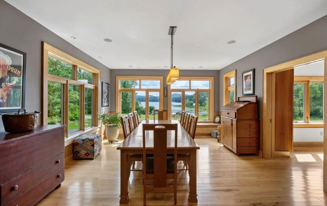 Welcome to 900 Crosswinds Drive in Charlotte-a stunning custom post and beam home offering panoramic views of Lake Champlain, the Adirondacks, and unforgettable sunsets. Thoughtfully designed and crafted by the original owners, this shingle-style residence blends timeless elegance with exceptional comfort. Step inside to warm hand-hewn hickory floors and a light-filled open layout oriented around the views. The chef’s kitchen features high-end appliances, a walk-in pantry, and seamless flow for entertaining. A Vermont stone fireplace anchors the living room, creating a cozy retreat for winter nights.