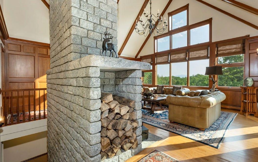 Welcome to a one-of-a-kind 141-acre mountaintop retreat at Stratton Mountain Resort - an extraordinary sanctuary with panoramic views of Stratton, Mount Snow, and Bromley. Designed for elegance and ease, this home is a rare blend of architectural beauty, comfort, and sophistication. A gracious entryway opens to a sunlit living room and library anchored by an 18-foot stone fireplace. Expansive windows frame breathtaking mountain vistas, filling the space with natural light.