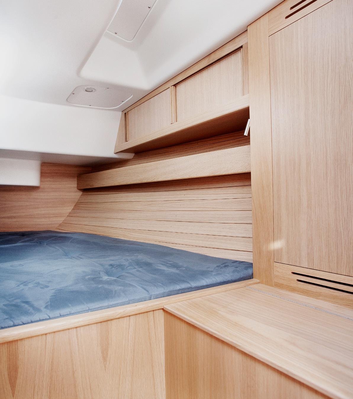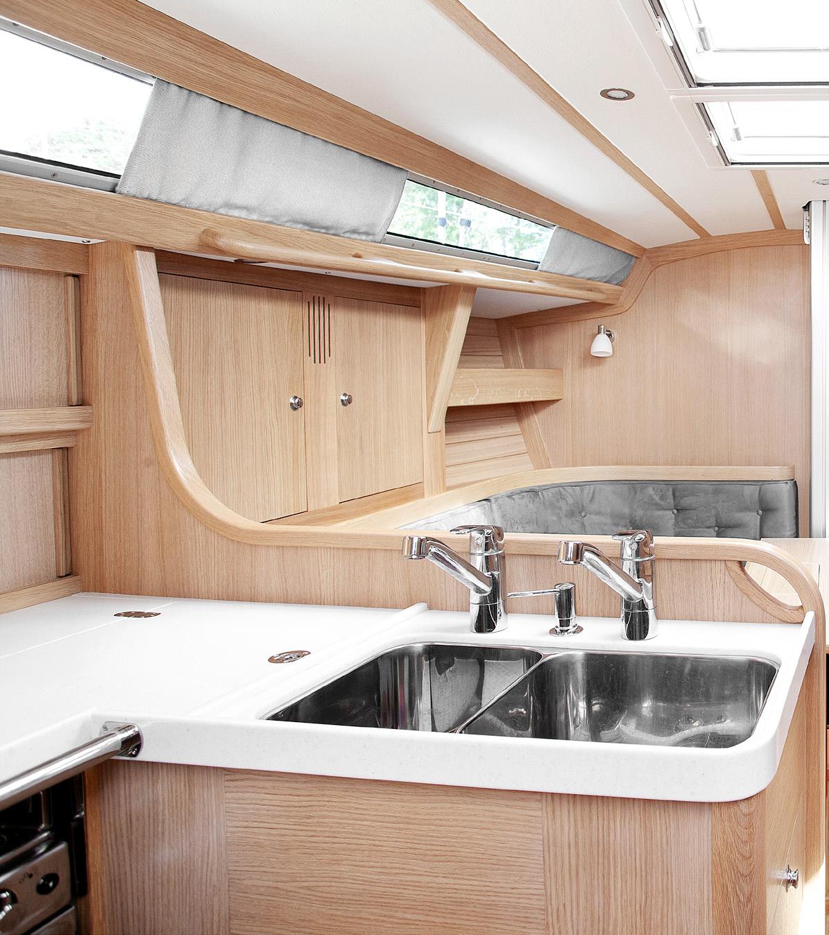 När du stiger ombord märks det att båten är byggd av skickliga hantverkare, när du börjar segla märks det att båten är byggd av skickliga seglare: interiört är hörnen rundade och du kommer märka att layouten skapar trygghet och du hittar stadiga handtag på rätt ställen.