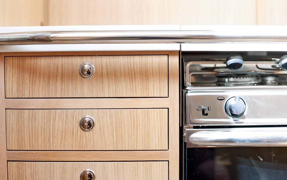 Interiörens ytor präglas av hantverk, runda linjer och former, med gediget träarbete och vackra detaljer i limträ. Klassiskt absolut, men under skalet gömmer sig moderna tekniska lösningar där all utrustning är av modernaste och smartaste laget. Det handlar om ett långsiktigt miljötänk, där saker ska hålla och fungera över tid, vilket vi verkligen fått erfara då vi dagligen hanterar så väl nya som 30-40 år gamla Linjetter, och vi lägger stor omsorg och tid när vi väljer ut komponenter till båten.