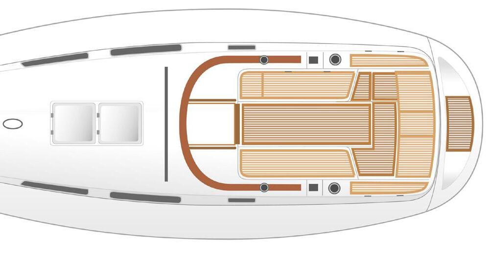 De smala och klassiska linjerna gör båten lättdriven och rolig att segla, men där finns en tydlig och trygg slutstyvhet tack vare en modern L-köl, som i kombination med stora rodret ger kontroll och trygghet både under gång och vid tilläggning – det är speciellt uppskattat vid manövrering i trånga hamnar. Målet är att med smarta och genomtänkta lösningar göra det enkelt att segla och hantera båten på få personer. Att tamparna löper under däck och mynnar ut vid de två vinscharna vid rorsman är inte bara funktionellt, det är också stilrent.