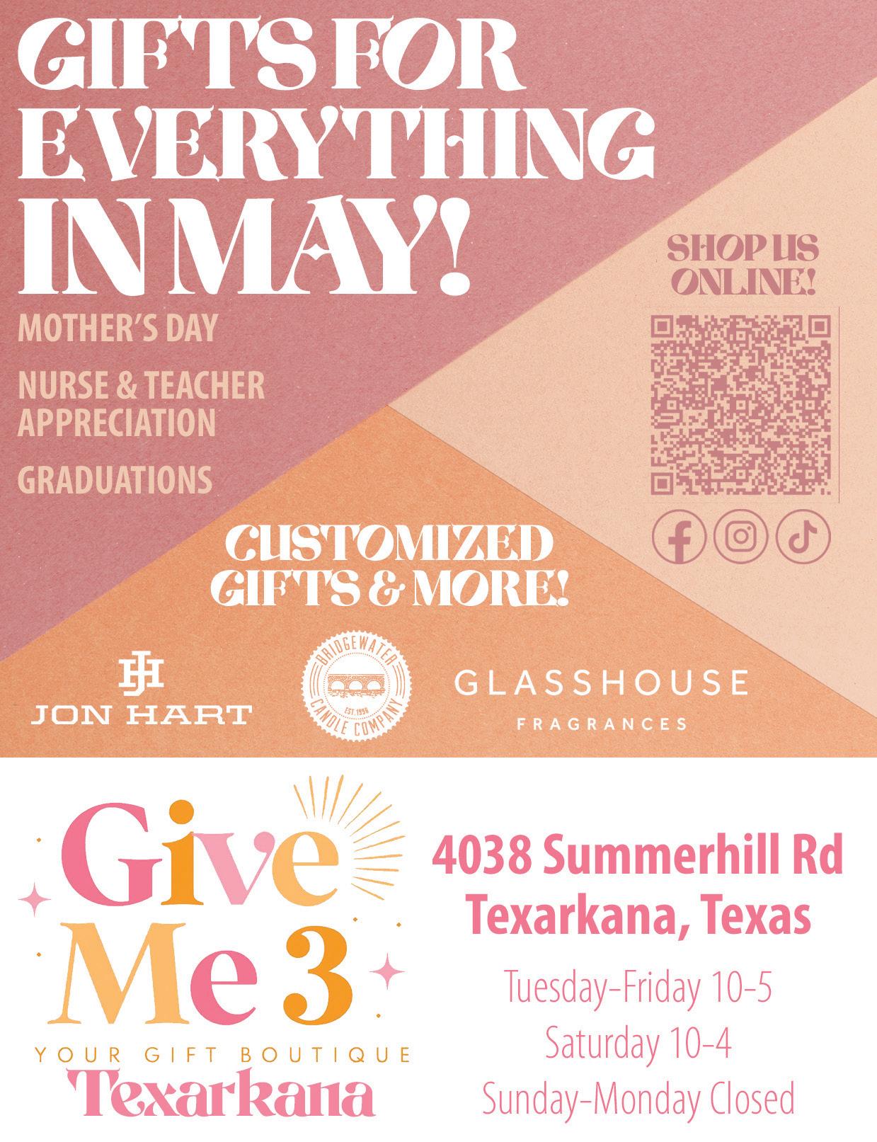 Emily Gammon is a fourthgeneration Texarkana native and the owner of Texarkana Party People, a local business dedicated to celebrating life’s big moments. She’s married to Joey, and together they’re raising three energetic boys—John Carter, Jack, and Jace—with a baby girl, Jane Kate, on the way. With a life that’s always fun, busy, and unpredictable, Emily is excited to share her experiences of motherhood, small-town life, and everything in between in her column.