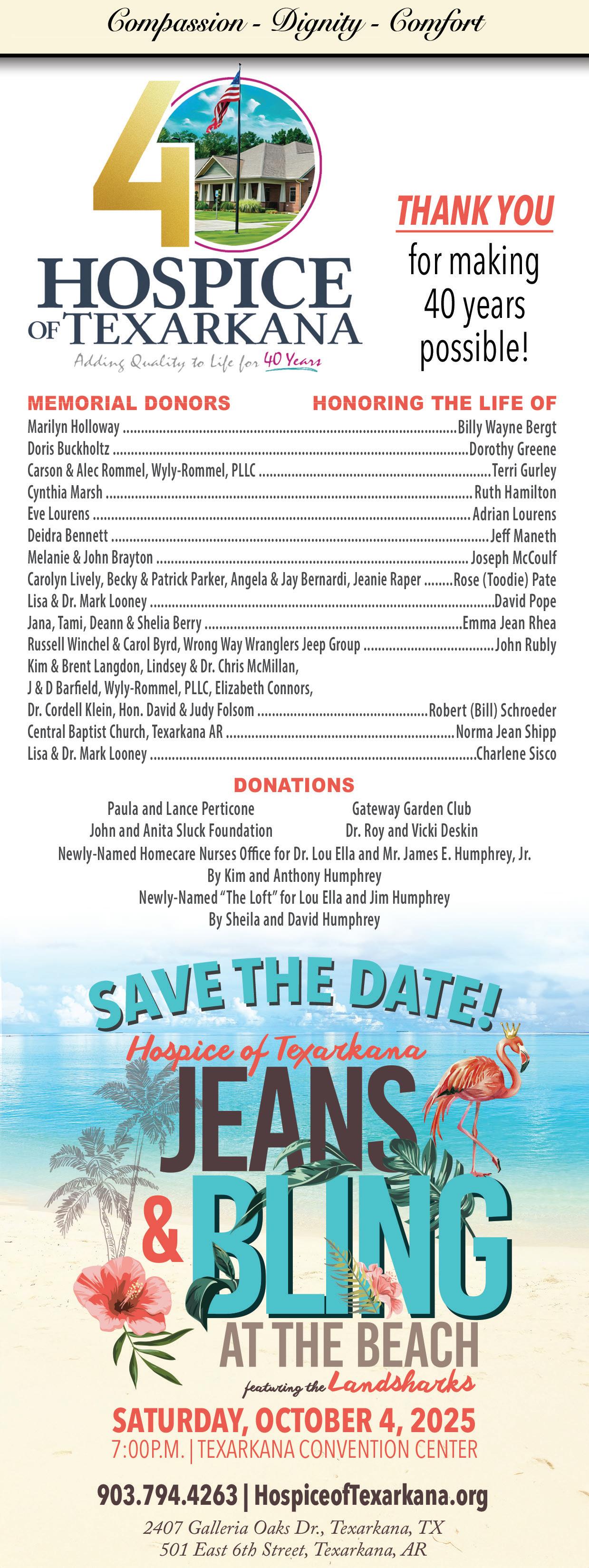 The 2025 Tribute to Women honorees have all made a significant impact on the lives of others. Each woman featured in this issue was chosen by an honoree from last year’s Tribute to Women to be recognized for their extraordinary contributions to the Texarkana community. As professionals, volunteers, and community members, these women have climbed the ladder of success, and FSLM thanks them for their service to others.