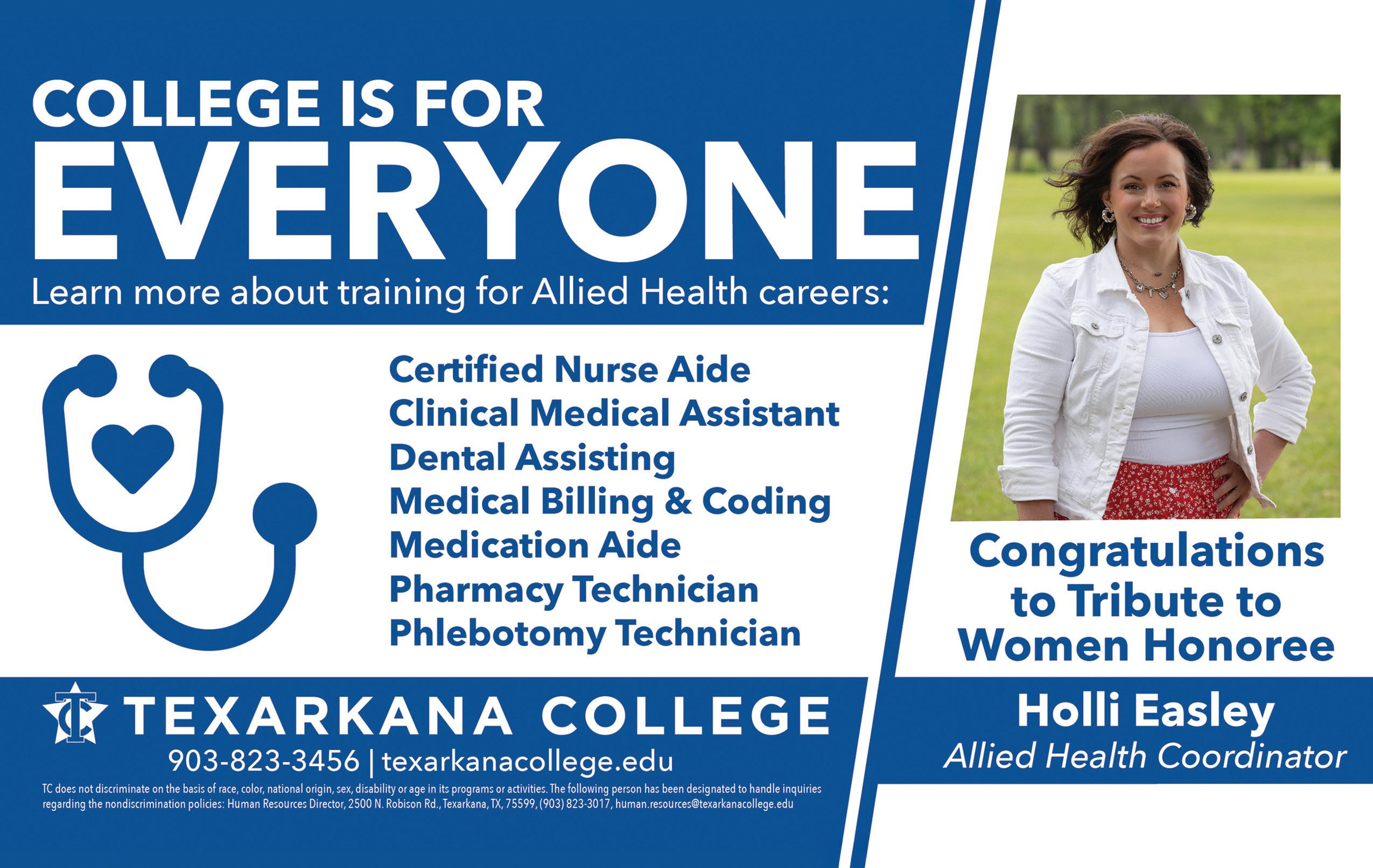 In her position as allied health coordinator at Texarkana College, Holli Easley loves supporting all types of students, but she is most fulfilled by her work with the young women who walk into her office.