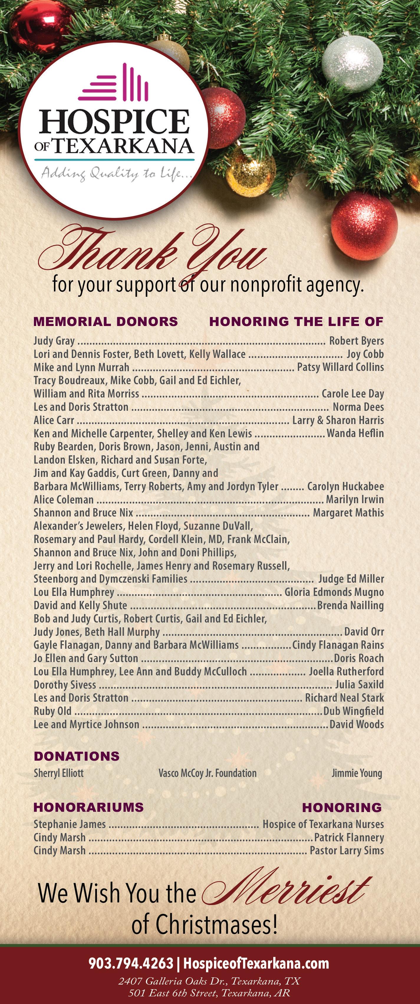 Chapelwood Funeral Home will host its 2022 Christmas Memorial Service at 2 p.m. Call 903-838-5300 for more information.