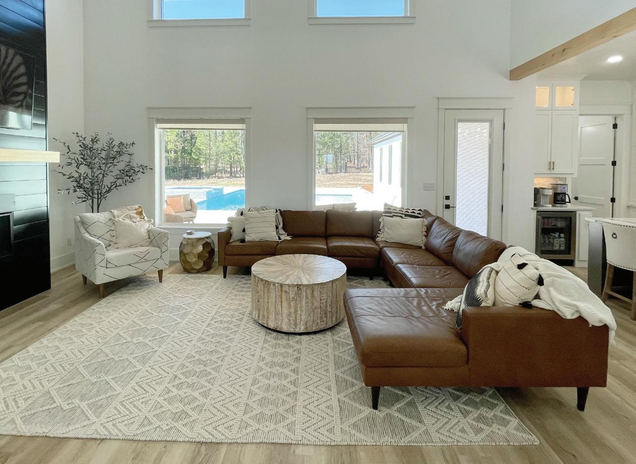 When Autumn and Joe sold their previous home, they sold everything with it, down to the silverware. Autumn had a book of photos that she had been saving for many years featuring designers and influencers that she enjoyed following. She and Joe truly enjoyed starting all over and seeing their home dreams come to fruition. “My favorite thing about our house is that it is open,” Autumn said. “You can see the pool from one side of the home and the beautiful lake from the other side.” No doubt, the Dawsons are fortunate to own this beautiful showplace that is located in a quiet, pristine neighborhood with gorgeous views of the lake, pool, and woods.