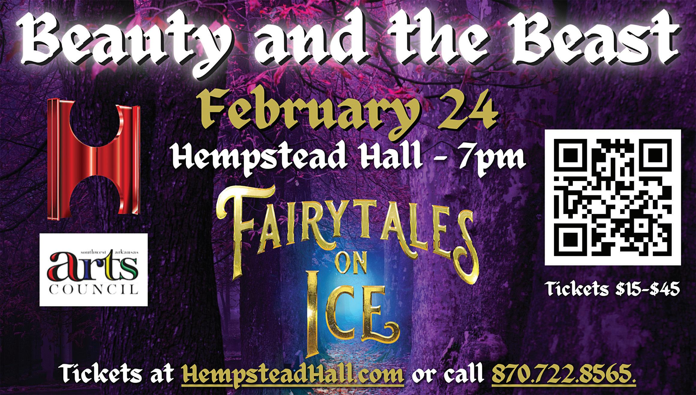 Fairy Tales on Ice will present “Beauty and the Beast” during a 7 p.m. performance at Hempstead Hall in Hope. Tickets are $15–$45 and are available by calling 870-7228565 or visiting www.henpsteadhall.com
