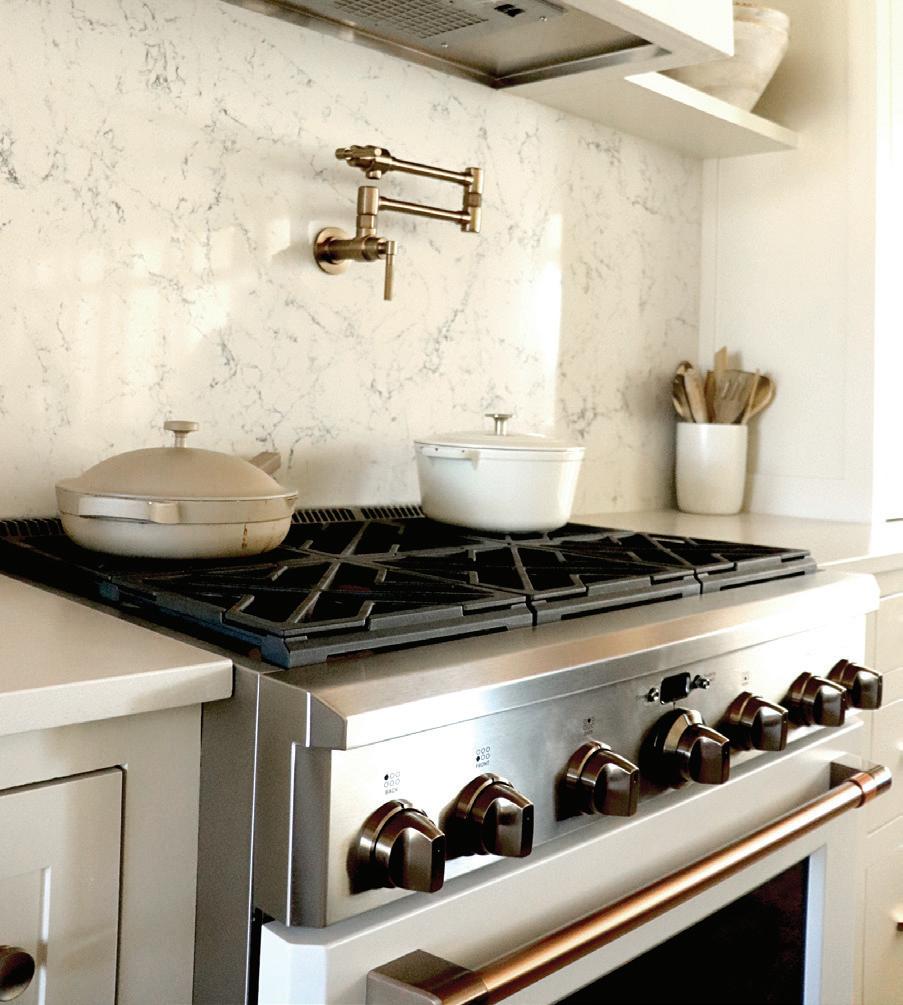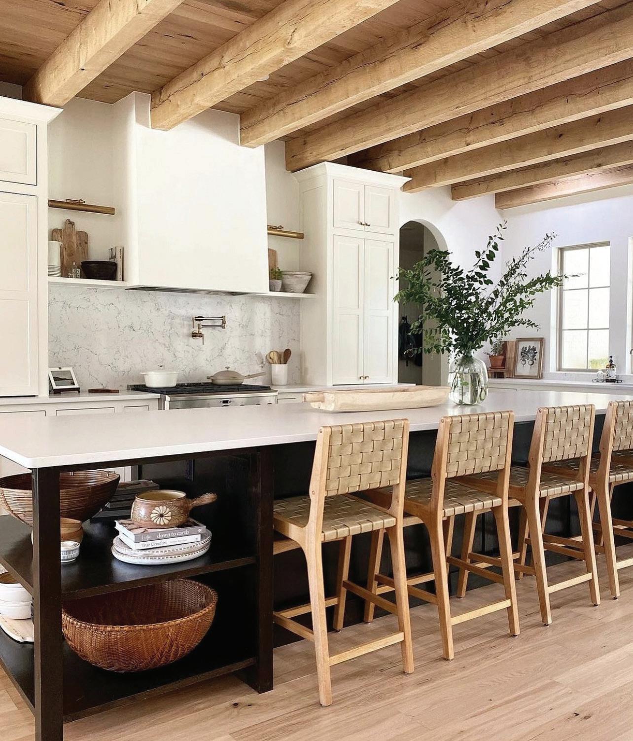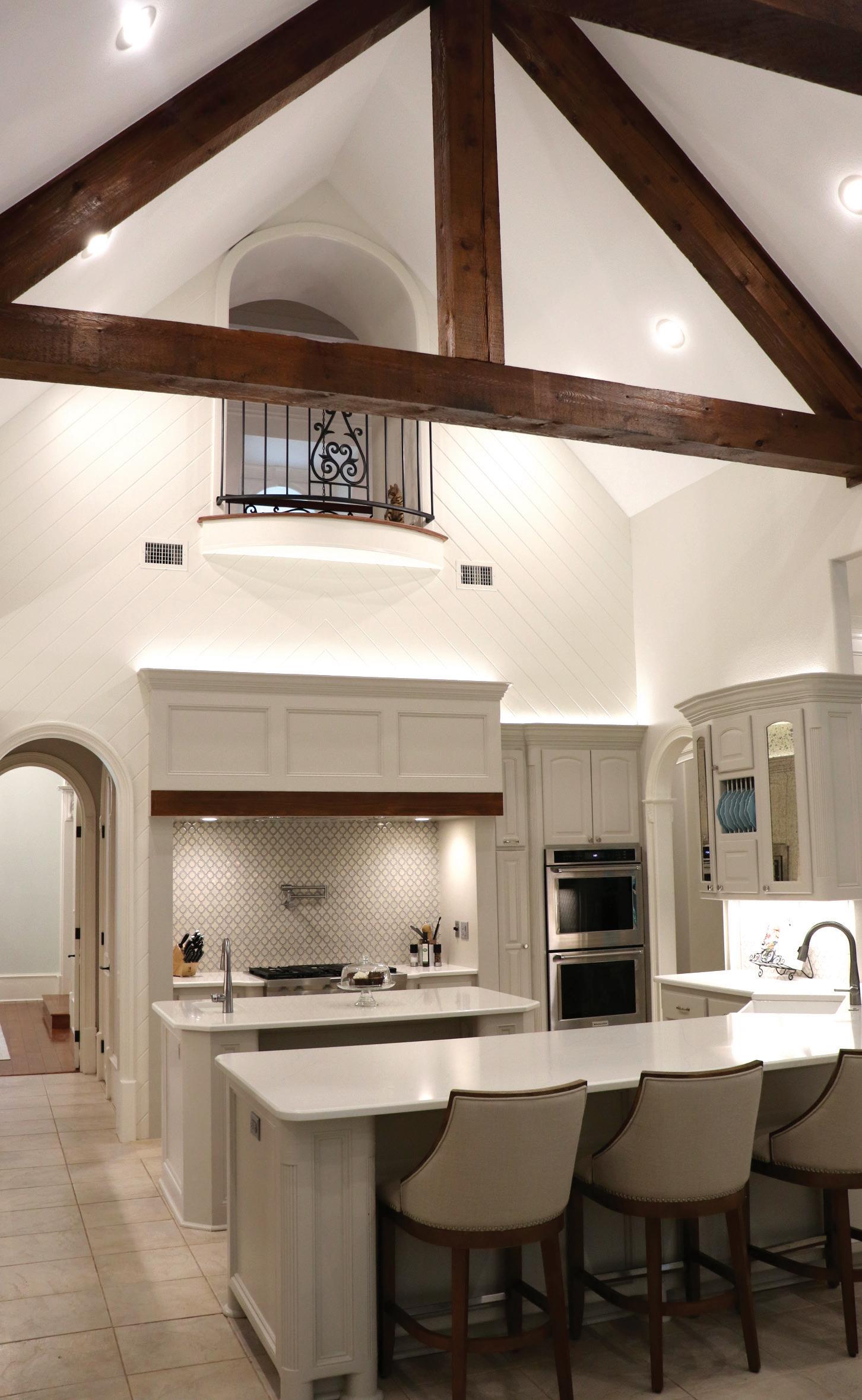 Functional, livable and comfortable, the modern cottage-inspired home of Suzy and Kyle Osburn creates the perfect space for them and their three children, River, Zimri and Zailee. The exposed raw white oak beams in their kitchen enhance the organic feel of the room while quartz countertops, stainless steel appliances, and streamlined cabinets add to the modern feel.