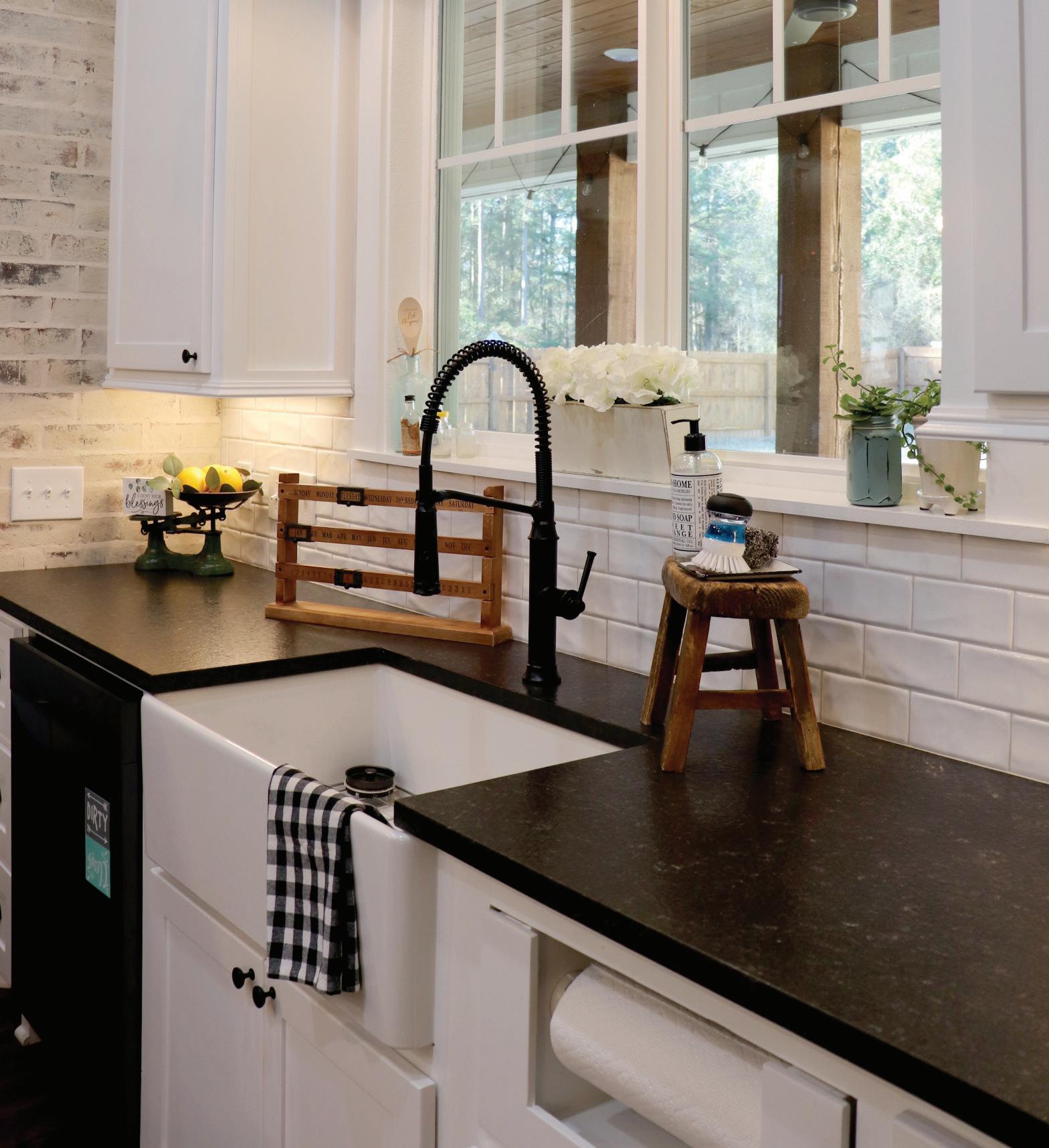 Felicia chose a modern farmhouse style for the new home. With the bricks paying homage to the past—to the home she grew up in, and the home she brought her baby home to—she felt it was time for a few upgrades in terms of appliances and stylistic elements. The home is exactly the same in square footage at 1700 square feet. It is still a three-bedroom/two-bath home. It still has a carport because Felicia has a nostalgic fondness for it. Felicia added a huge back porch— another place for large gatherings like the ones she was raised on. Even with the updates, it “still feels like home,” she said.