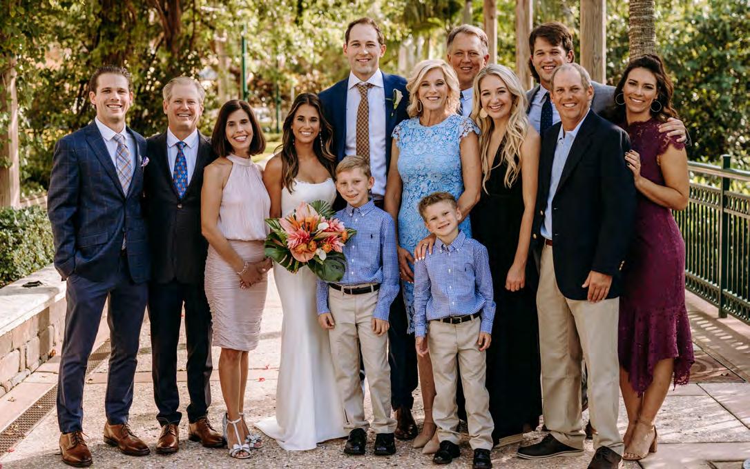 Michael moved to Tampa Bay to play with the Rays, and he and Sarah planned a large wedding in St. Louis for November 2020. COVID-19 altered their plans, and they ended up getting married in their backyard on November 28, 2020, in Jupiter, Florida, 10 days after moving into their house. They hosted family for Thanksgiving and married two days later. “Our change of plans led to the most perfect wedding and weekend,” Sarah states. “We had 15 of our closest family and friends. It was our parents, siblings and their significant others, my very best friend since preschool and Michael’s nephews. We really wanted our grandparents to be there, but it was too risky with COVID. The wedding ended up being everything we could have asked for and more. It could not have been more different than what we originally planned on doing (probably around 300 people at a country club in St. Louis) but it was so US (low-key, intimate, with our favorite people on Earth minus a few, of course). There was no pressure. We actually got to talk to our parents, talk to each other. It was perfect.” Sarah’s dad got ordained to officiate the ceremony, and Michael’s dad shared a Bible reading. The couple set up a Zoom feed so that other friends and family could participate virtually. Michael and Sarah also wrote their own vows, which they say was their favorite aspect of the ceremony.