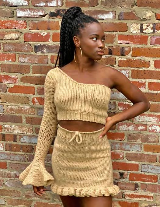 A quick peek at Fezeka’s social media accounts reveals just how inspired her creations are. Not only is she an amazing designer, but she models her creations well, too. “I get the inspiration for my pieces mostly from social media,” she said. “On Instagram specifically, there is a large presence of talented crochet artists. My fellow crochet artists inspire me with their beautiful creativity to up my game and try new things.”