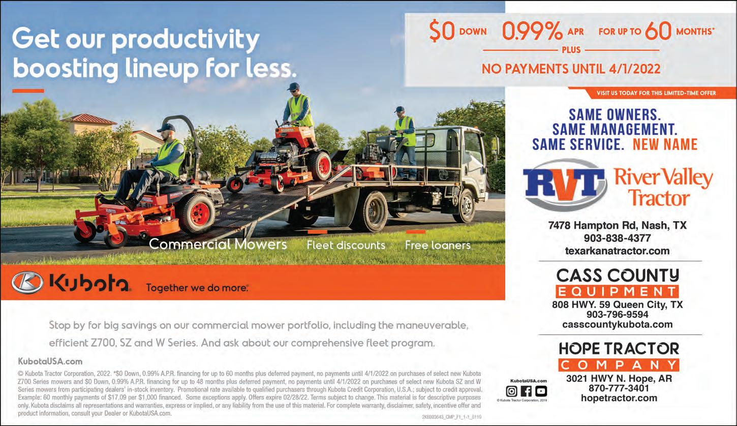 Dot’s Ace Hardware will host Boomtown Border City Steak Cookoff. An SCAsanctioned steak cookoff, the event will be held outside of the hardware store, located at 3411 Richmond Road. Over $3,000 in prizes will be awarded to the best in each category. The event is free to the public to watch. To register for the event, visit: www. steakcookoffs.com/event-4490753 or call Devin Jennings or Lisa Garton at 903-838-0059.