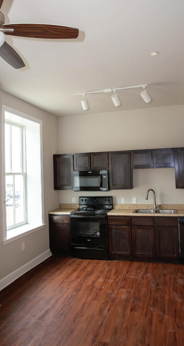 The project also secured funding from the U.S. Department of Housing and Urban Development. Because some of the financing is from the federal Low-Income Housing Tax Credit program, all rental units at the Grim will be income-restricted. Residents must make no more than 60% of the local median income. Over 90 units of varying sizes (studio, onebedroom, and two-bedroom) will be available for rent.