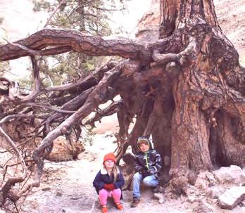 The trail we chose to explore began as a paved path, which gave way to crushed gravel, and eventually began to wind into the slot canyon. Just before the trail entered the canyon, we met a massive pine tree in the path. The gnarled roots were exposed, and it was quite a wonder how the tree remained alive. It stood tall, strong even, and the roots held tightly despite the years of erosion. It was quite beautiful, and I paused to take some photos. Immediately after that, the trail disappeared, and we followed the canyon floor. We walked along, our hands gently trailing the sandstone walls. At times the walls were smooth and wavelike and at others it seemed like concrete had been poured over a rock pile. My children had so much fun observing all of the different types of rocks embedded in the canyon walls. The hike itself was not difficult – at least to the point that we made it to before becoming too cold. It was also breathtaking just for the immense beauty of the sandstone structures, seeming to rise like tents in places.