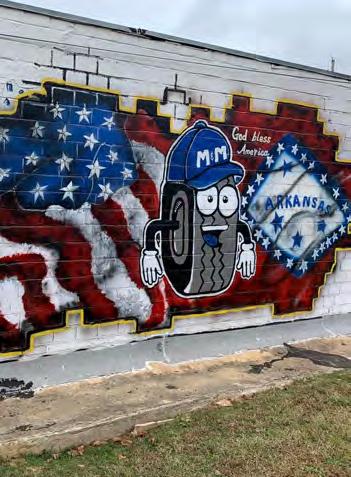 This original Darlene Taylor mural is painted on the side of the M&M Tire and Auto building, located on North State Line Avenue.