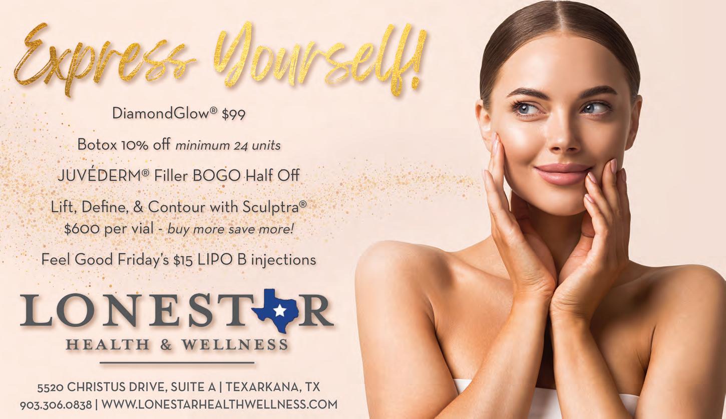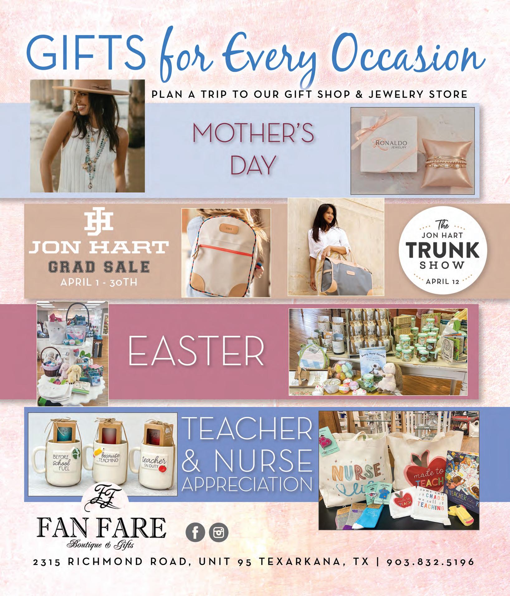 Advertising rates may be obtained by contacting the Sales Department at 903-7922262, writing to Four States Living Magazine, 4106 Summerhill Square, Texarkana, Texas 75503, visiting our website www.fourstatesliving.com or emailing our Sales Department at info@fourstatesliving.com FOUR STATES LIVING MAGAZINE
