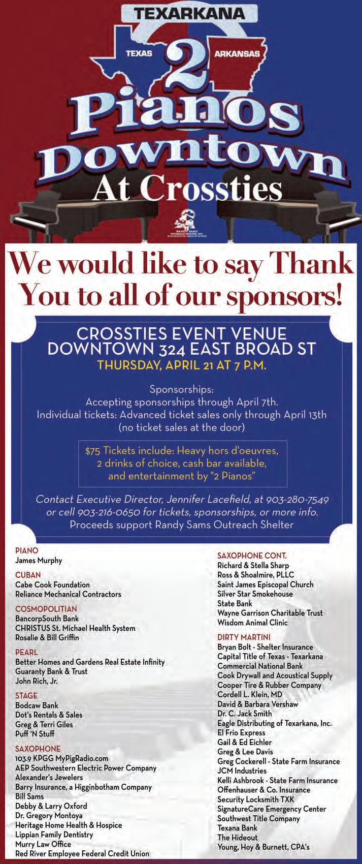 Note: If your business or organization would like to participate in Texarkana’s 150th Celebration in 2023, please submit your event at https://forms.gle/ cDAdTB79dJi7Wjye6 or email the txk150 Planning Committee at txkusa150@ gmail.com.