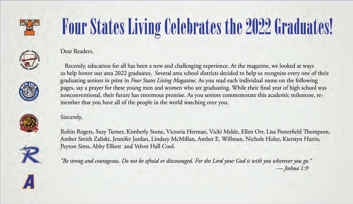 INSPIRE THE PESSIMIST ELEVATE THE OPTIMIST STIR THE MIND ENTERTAIN THE SOUL Four States Living Magazine is published the first business day of every month. © Copyright 2022 by Four States Living Magazine. No part of this publication may be reproduced in any form without written permission of the publisher.
