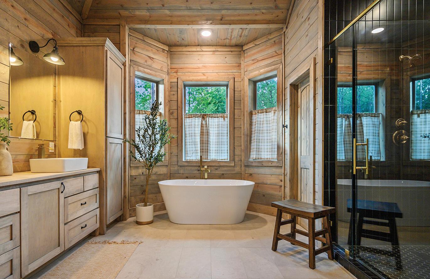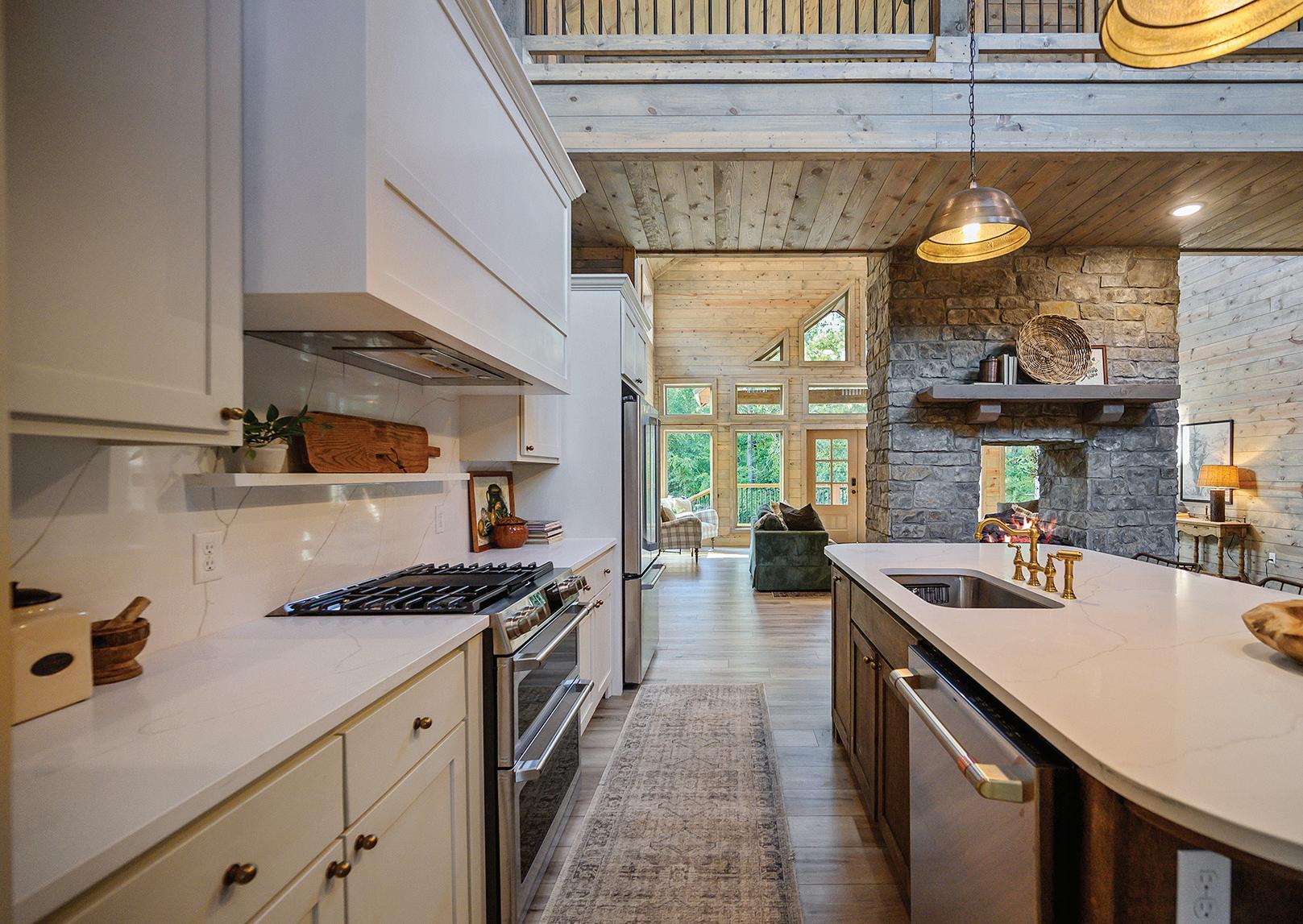 Brooks of Seventh Day Design to design the interior, including paint, stain, counters, and furnishings throughout the cabin. The project began in February 2022 and has just been completed.