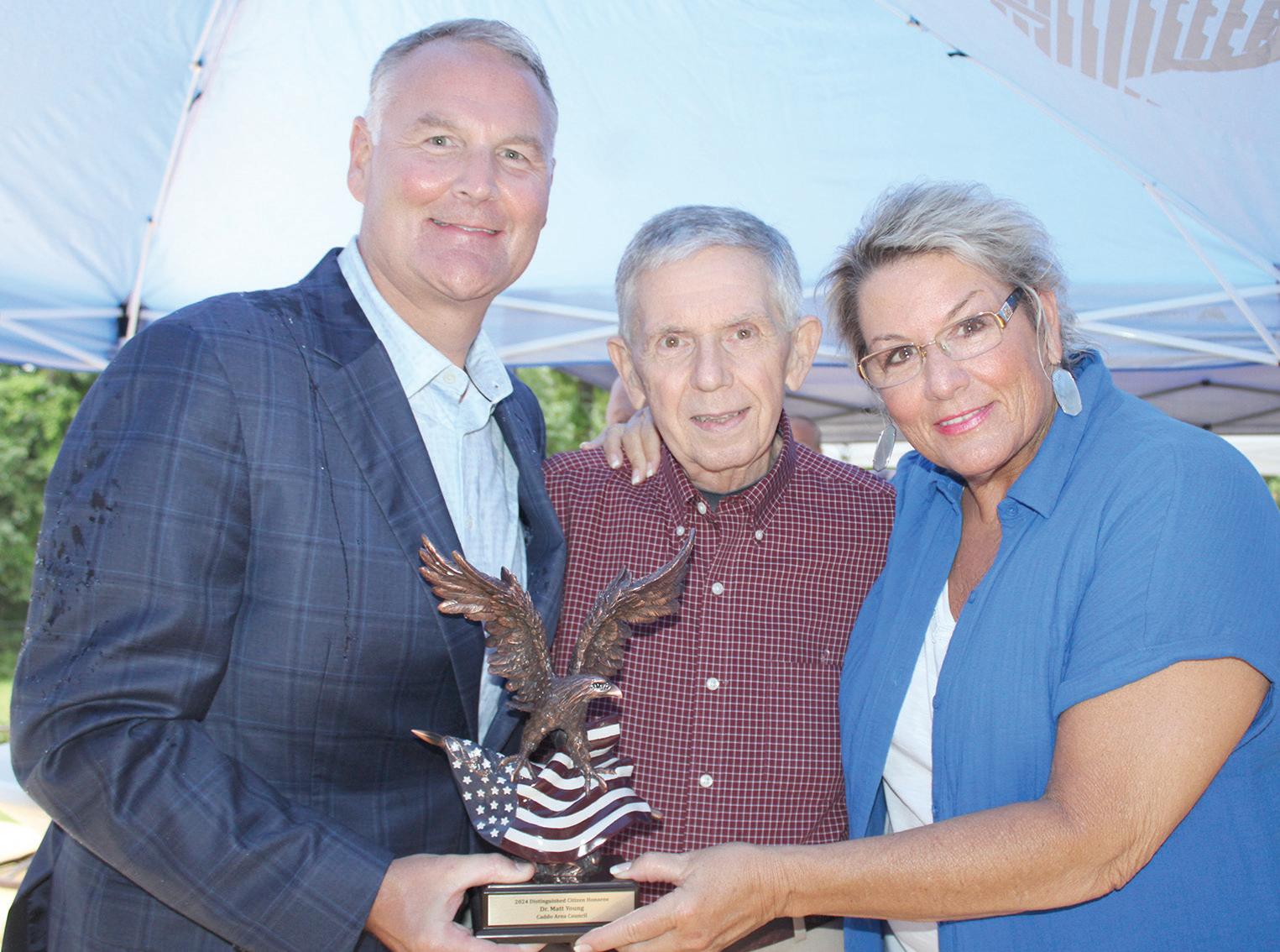 DR. MATT YOUNG WAS HONORED WITH THE CADDO AREA COUNCIL BOY SCOUTS OF AMERICA DISTINGUISHED CITIZEN AWARD AT THE HOME OF BARRIE THOMPSON ON TUESDAY, MAY 28TH.