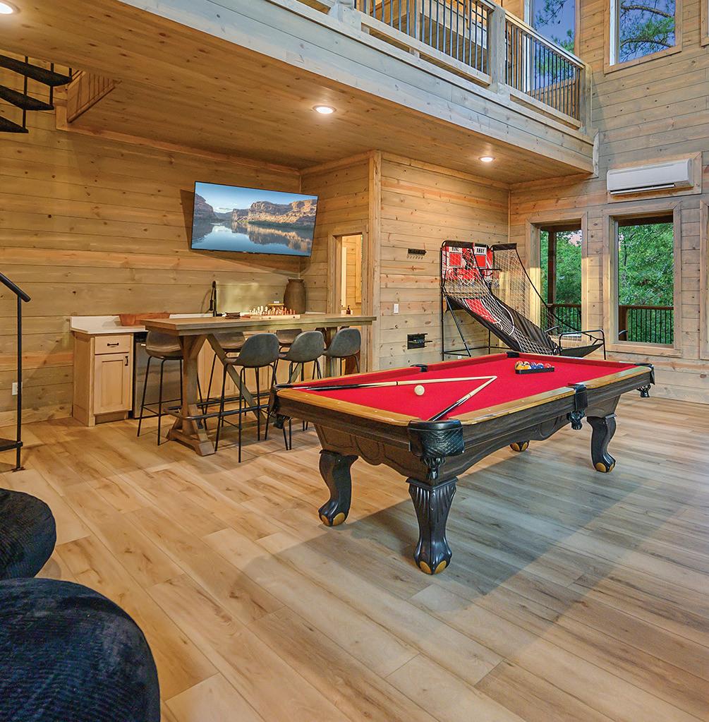 Several nearby vacation destinations are popular with the Texarkana community. Broken Bow, Oklahoma, just 90 minutes away, is one of the best spots for those in Texarkana wanting to get away from the hustle-and-bustle for a weekend or longer. There is no shortage of beautiful cabins to be discovered and leased in Broken Bow, and this recent build, named “Firefly Pines,” is no exception. This newly erected cabin is owned by Lyndsey and Brent Germany of Prosper, Texas. With four large bedrooms, two bunk rooms, and seven bathrooms, the cabin can comfortably accommodate up to 24 people. The owners brought in Brittany