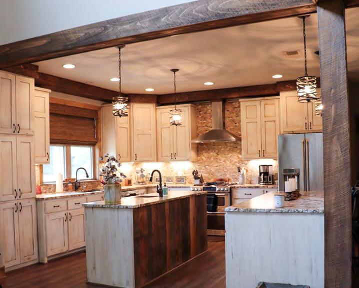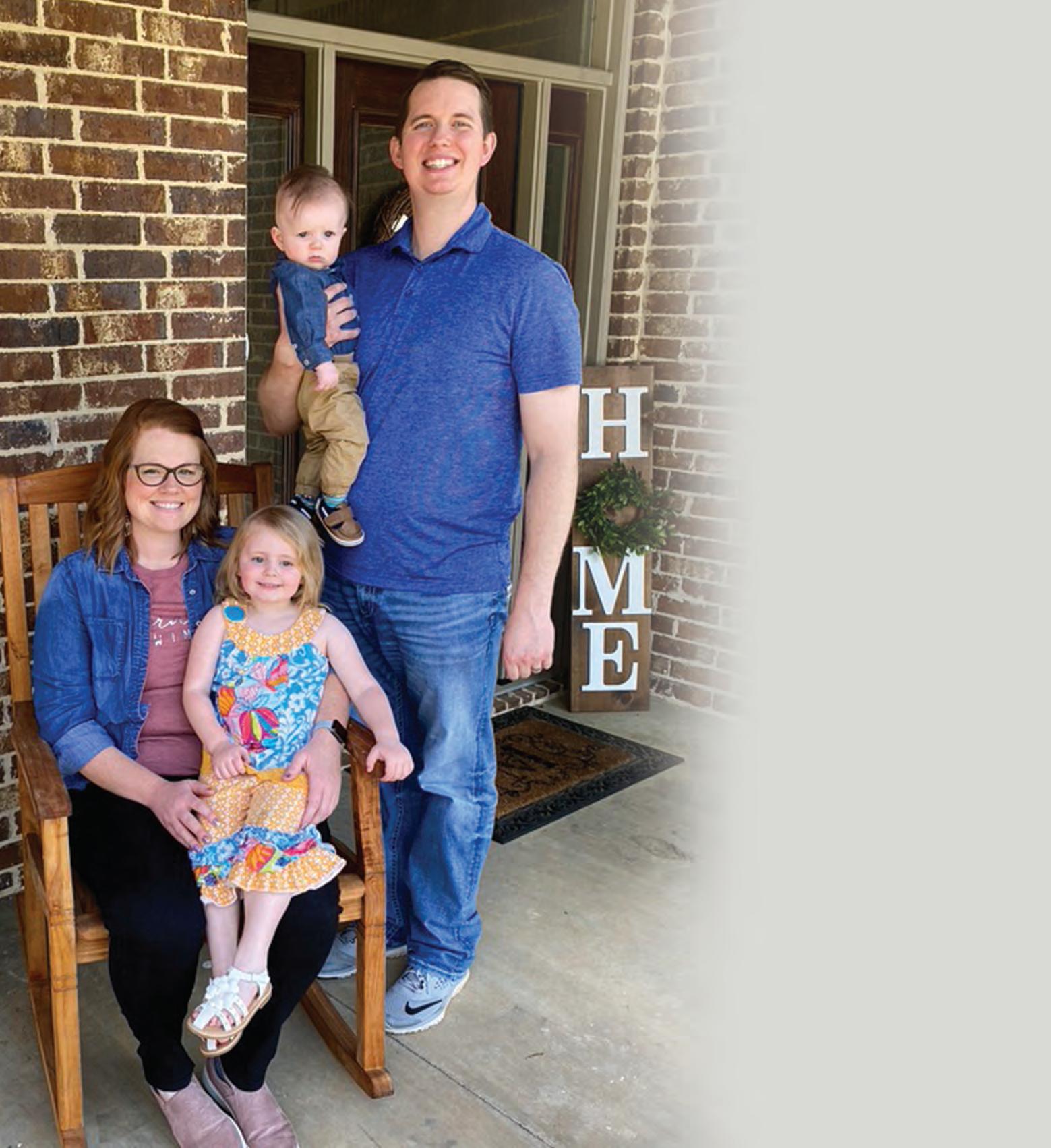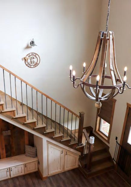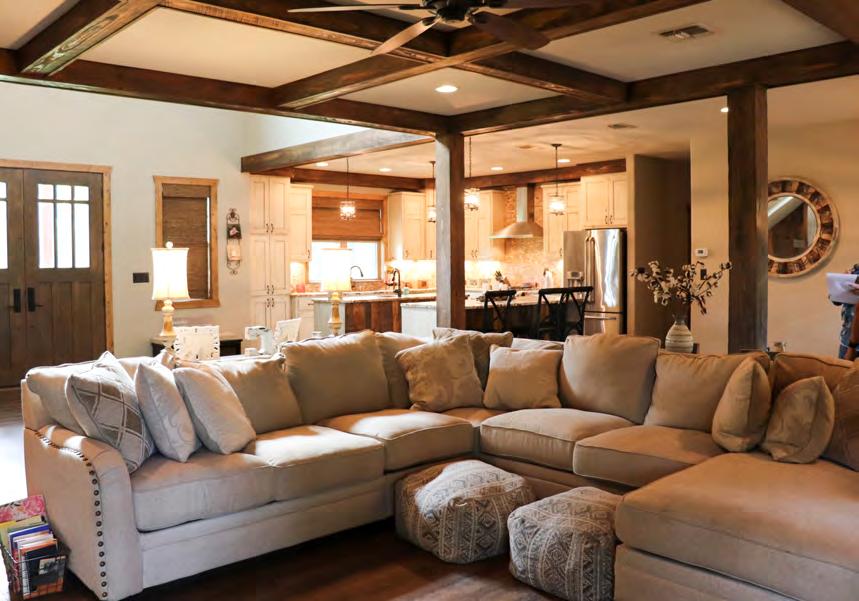 With charming curb appeal, the Clack home showcases rustic elements while still maintaining a modern aesthetic. The reclaimed tin used in the breezeway and the front entrance gives the home present-day charm and a reminder of days gone by. Carissa and John provided consistent input during the building process so their home is an extension of who they are. The open floor plan and simple clean lines combined with the use of natural, unaltered materials makes it easily adaptable to the family. It is easy to see why the Clacks and their children love being together in this immaculate home, sharing quality family time.