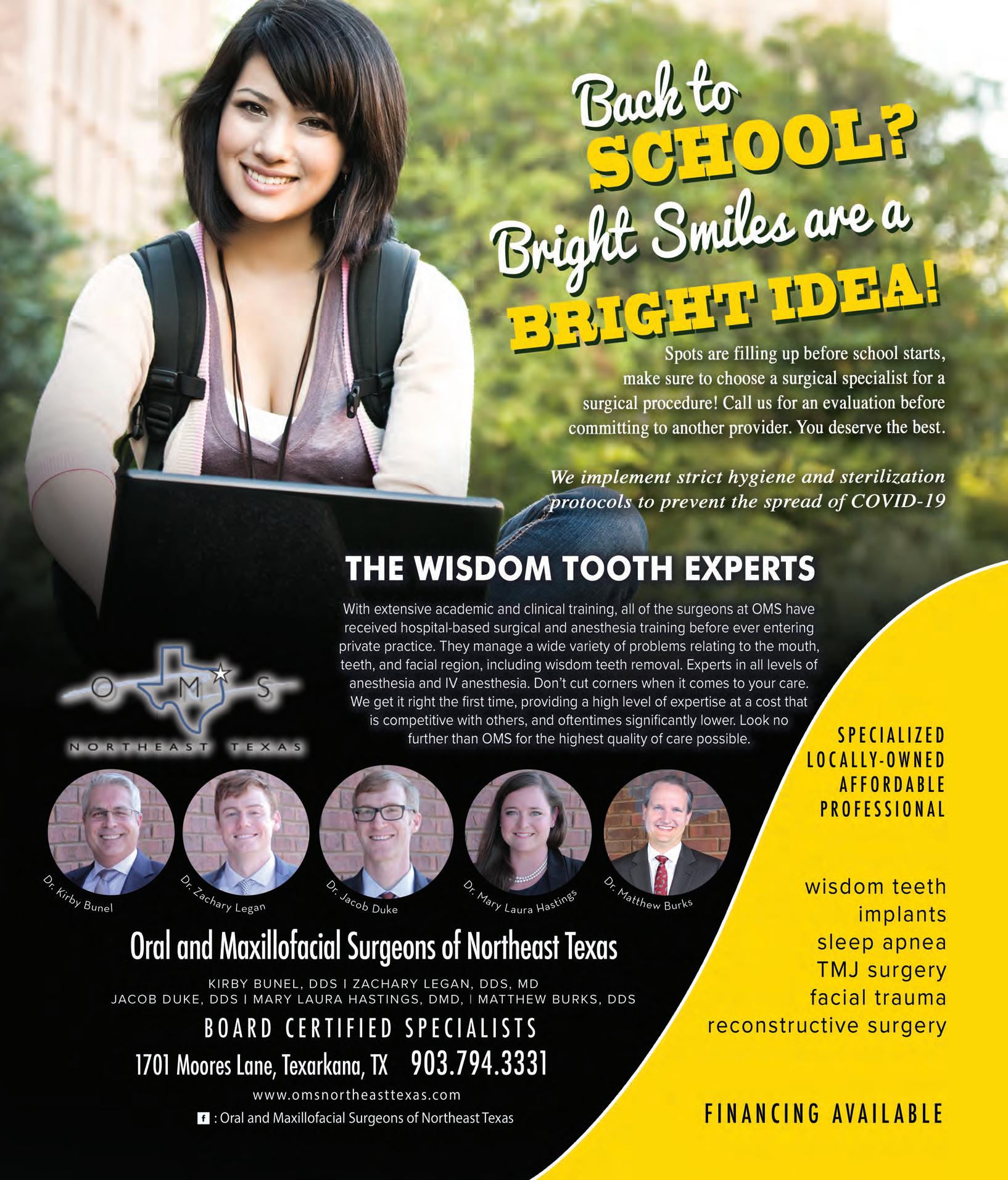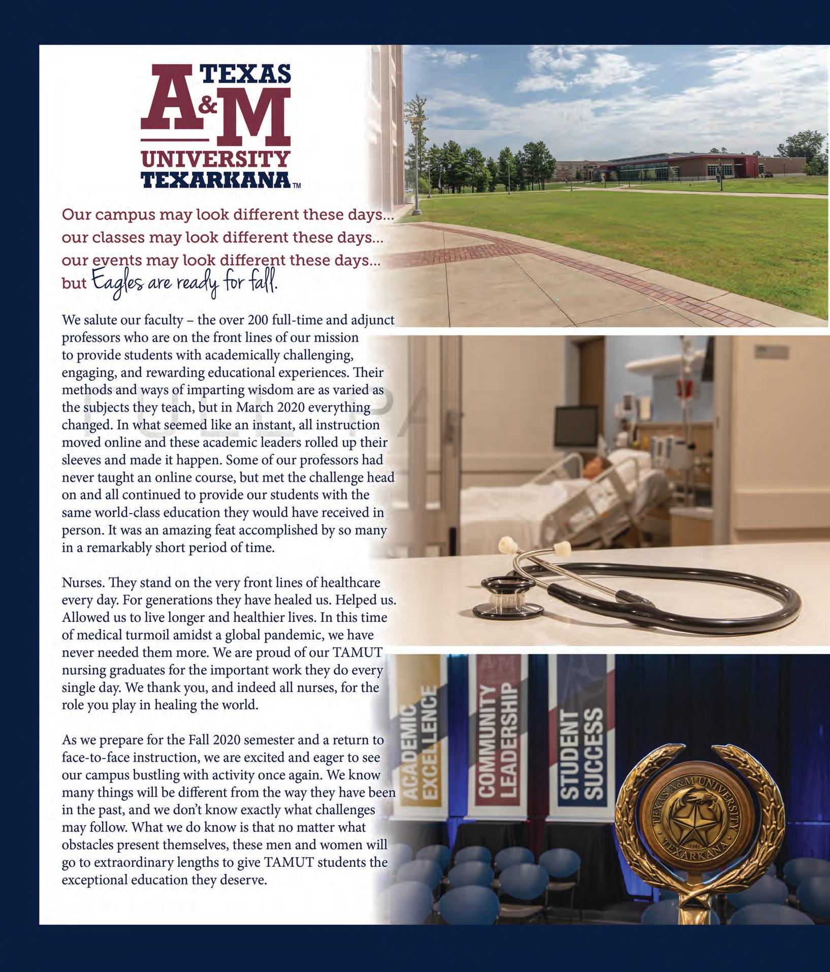 I am more proud of this issue than I can ever explain. It’s packed with great stories on educators, students, administrators, alumni, and coaches. But, Dr. Ben Neuman, our cover story feature, is a scientist and educator at Texas A&M-Texarkana who undoubtedly knows more about the virus we are all consumed with than anyone else in Texarkana. He is world-renowned. And locally, he has become known by his Facebook and YouTube videos that answer questions by viewers from around the country. Dr. Neuman doesn’t have to do a daily video update and answer questions, but like Maya Angelou used to say, “When you learn, teach; when you get, give.” Dr. Neuman and all of the other educators we present this month also live by that quote; so, if nothing else, let’s take the arguments out of earshot for our kids, and support their teachers and their administrators, as we all walk this educational journey in a new way.