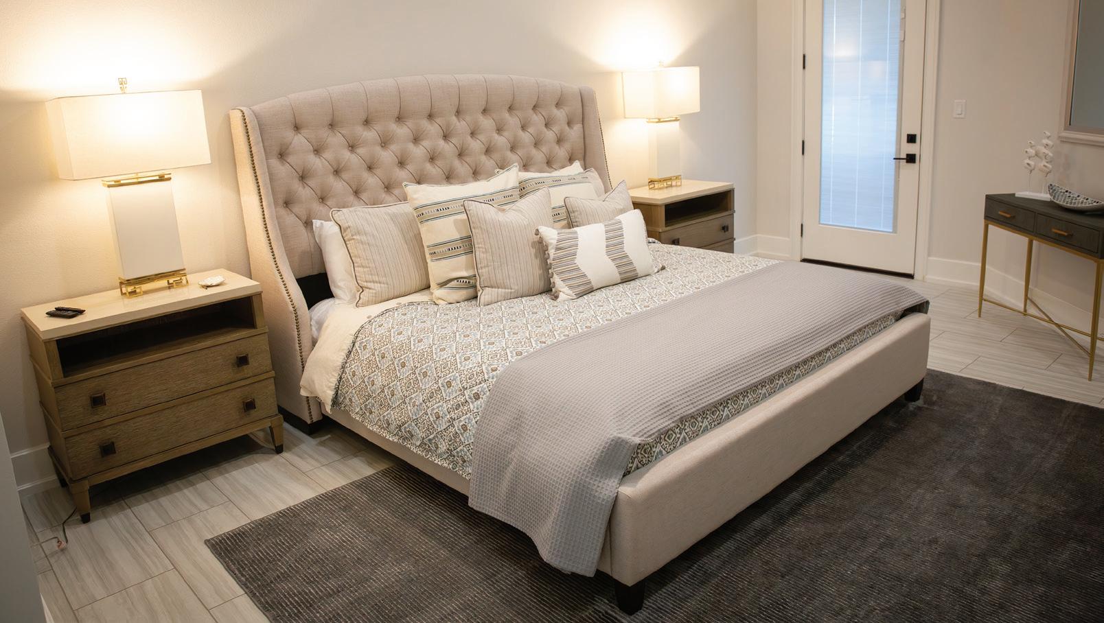 The Coxes credit Dana Cox, owner of Cox Exterior Design & Development, with much of the house’s curb appeal. The yard’s neatly arranged square garden beds span from the curb to the front of the house, while rectangular garden beds line the driveway, which leads to the two attached garages on either side of the home. The driveway’s black inlaid stones add extra visual interest.