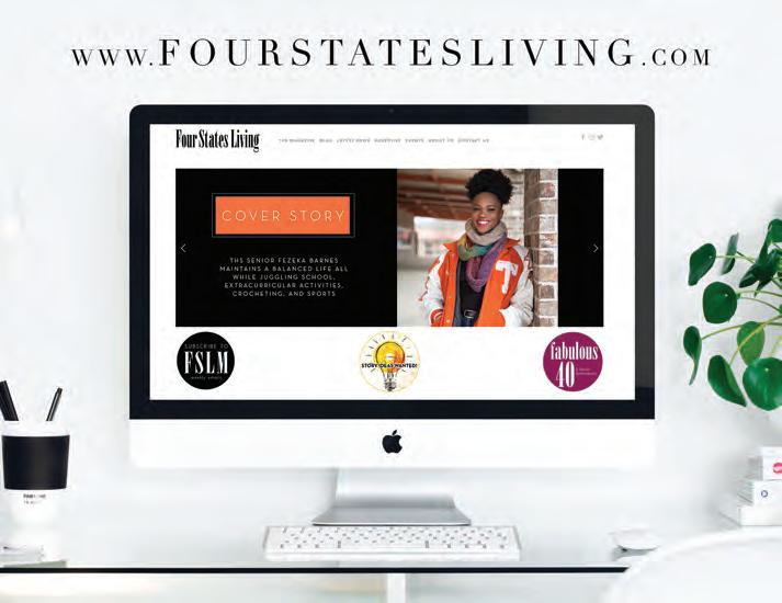 Advertising rates may be obtained by contacting the Sales Department at 903-7922262, writing to Four States Living Magazine, 4106 Summerhill Square, Texarkana, Texas 75503, visiting our website www.fourstatesliving.com or emailing our Sales Department at info@fourstatesliving.com
