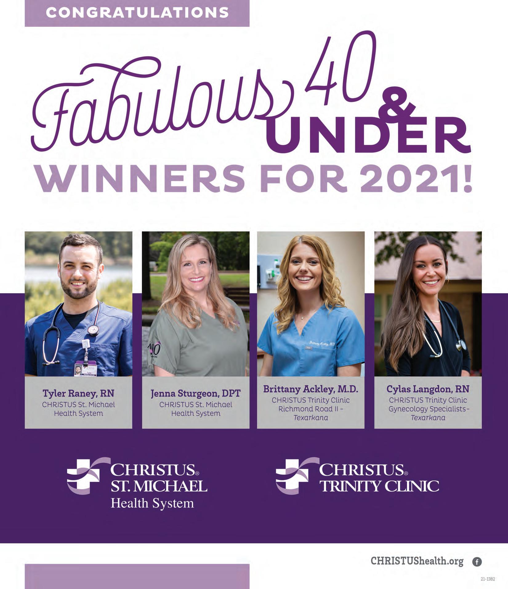 In 15 years, Four States Living Magazine’s “Fabulous 40 and Under” issue has recognized 600 people who are 40 years old or younger and are committed to making Texarkana a better place for everyone. From educators and medical professionals to entrepreneurs and business leaders, we salute these movers and shakers whose creativity, vision, and passion enrich countless lives on a daily basis.