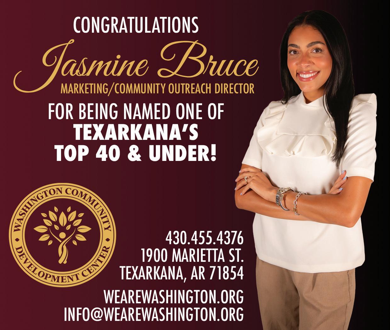 After graduating, Jasmine worked and studied at Arkansas Tech, coaching cheer and working in communication for the university while earning a master’s degree in digital communication and media. In 2023, she returned to Texarkana, where she has “[dived] headfirst into the local community,” she said. She currently works as the social media and community outreach director for both Total Medical Supply and We Are Washington.