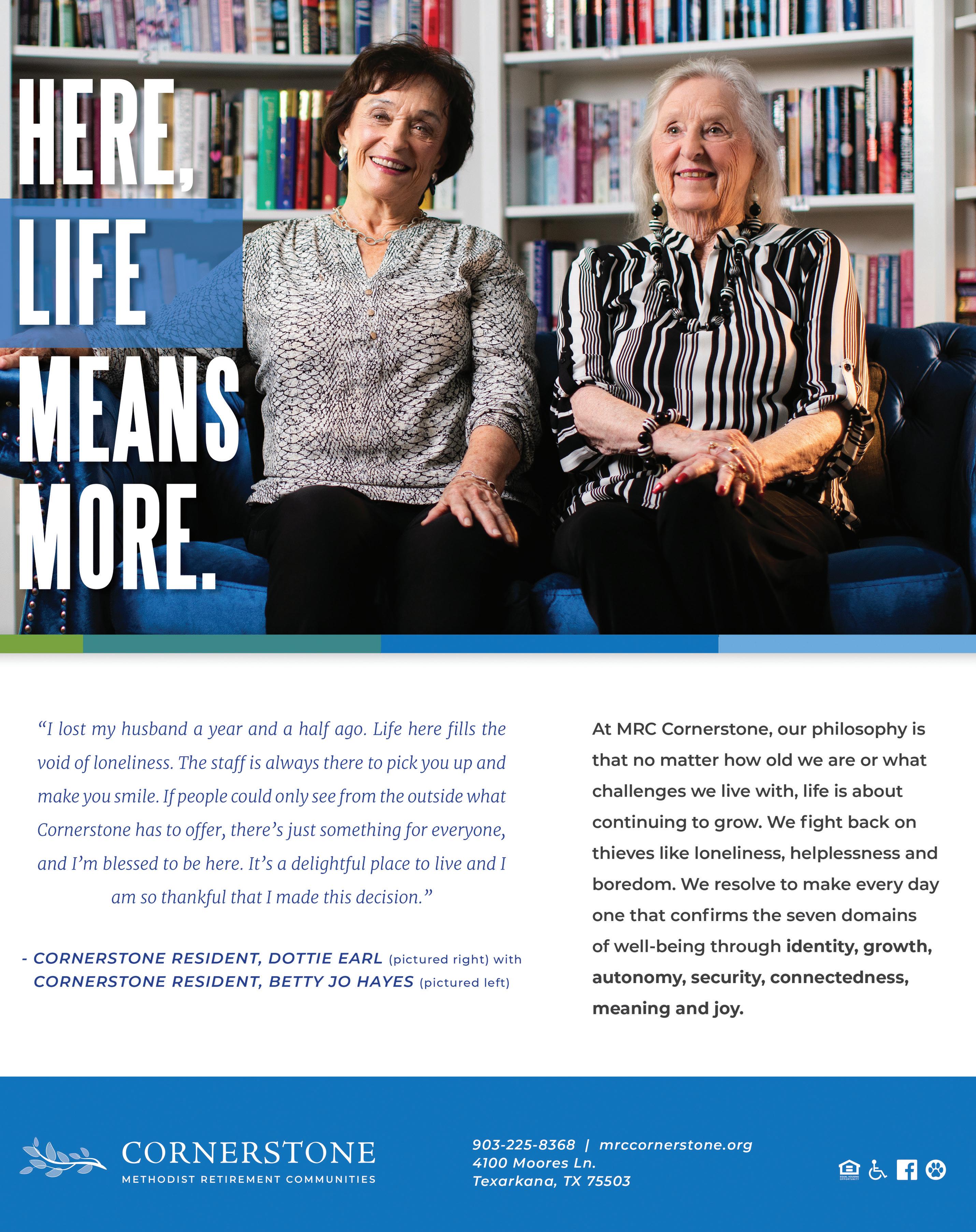 Advertising rates may be obtained by contacting the Sales Department at 903-792-2262, writing to Four States Living Magazine, 4104 Summerhill Square, Texarkana, Texas 75503, visiting our website www.fourstatesliving.com or emailing our Sales Department at info@fourstatesliving.com FOUR