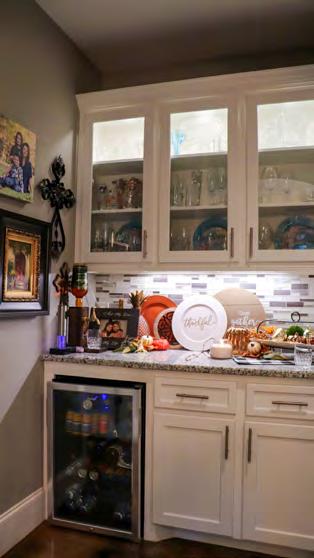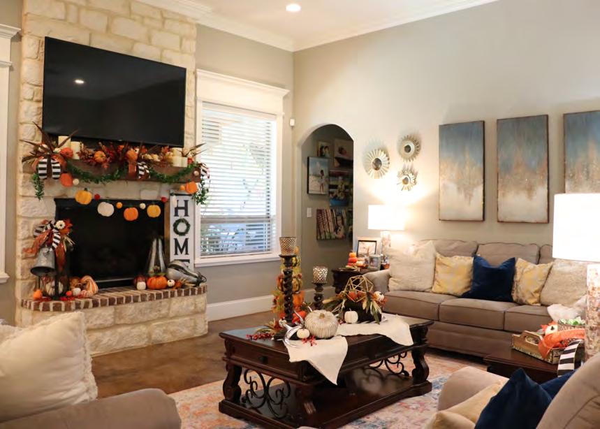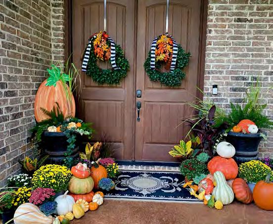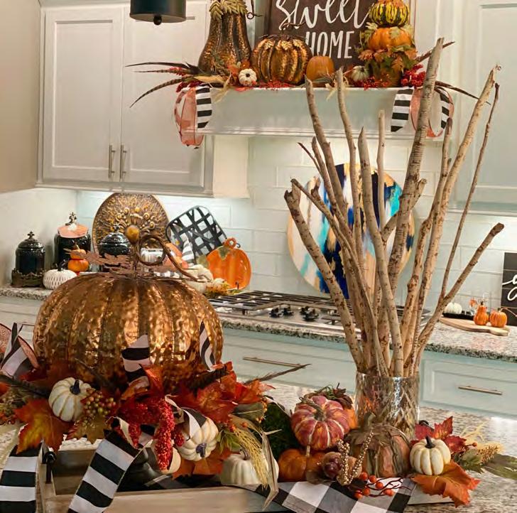 Pumpkins, gourds, hay bales, and chrysanthemums in shades of orange, yellow, and brown are signs that autumn is finally here. Registered nurse Dana Szymanski and business owner Zack Clapp have embraced the cooler autumn days and transformed their beautiful home into a seasonal wonder by using foliageinspired colors and natural elements throughout.