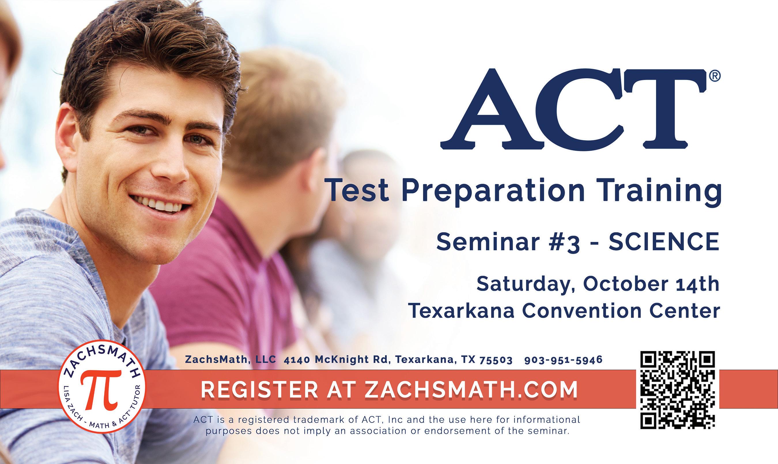 The seminar is put on by ZachsMath, LLC and will be held at the Texarkana Convention Center from 8:30 a.m. to 12:30 p.m. Cost is $195. For more information or to register, visit zachsmath.com/strive36-act-seminars/.