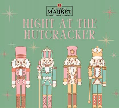 The Junior League of Texarkana’s annual Mistletoe Market will be held November 22nd through the 24th at the Holiday Inn Texarkana Arkansas Convention Center. This event, which serves as the JLT’s primary fundraiser, benefits the organization’s various community service projects and grants. The 2024 event is themed “Night at the Nutcracker” and has been organized by the women pictured on the cover.