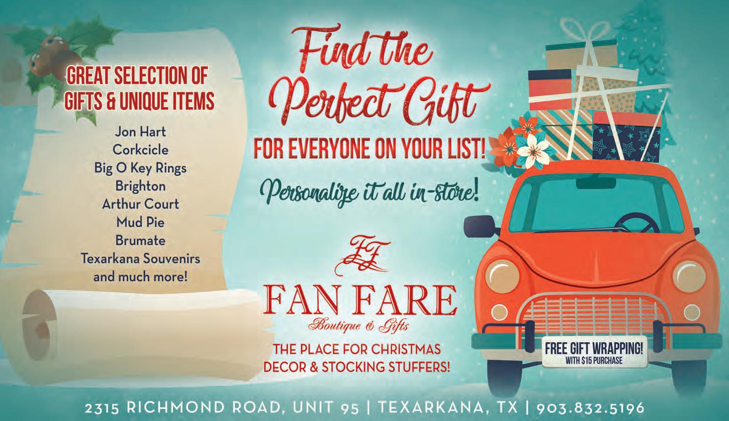 Fan Fare Gifts held its Christmas Extravaganza on November 20. “Santa” and “Mrs. Claus” were available for “Selfies with Santa,” and prizes, refreshments, giveaways, and holiday shopping was enjoyed by attendees.