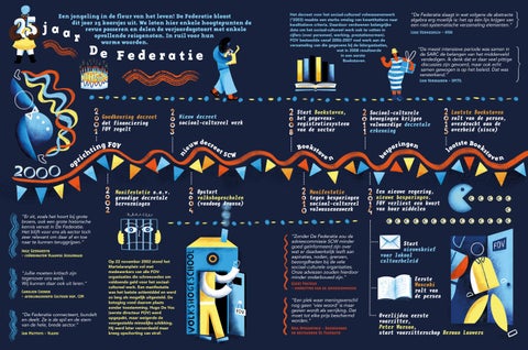 Wij zijn De Federatie. Onze baseline bestaat uit “sociaal-cultureel werk” en “amateurkunsten”, de sectoren voor wie we het allemaal doen. De Federatie verenigt, vertegenwoordigt en informeert (lid)organisaties die op ‘landelijk’ vlak in deze twee sectoren actief zijn, maar ook initiatieven op regionaal en lokaal vlak staan op onze radar. Vlaanderen is voor ons ondenkbaar zonder sociaal-cultureel werk en de amateurkunsten: geëngageerde en creatieve burgers kunnen er hun ei kwijt, blazen er onze democratie voortdurend nieuw leven in, leren er op 1001 manieren dingen bij en beleven hun passie samen met anderen. Ze zijn de schering en inslag van ons sociaal weefsel. Dat is waar we in geloven. Dat is wat ons drijft, elke dag opnieuw!