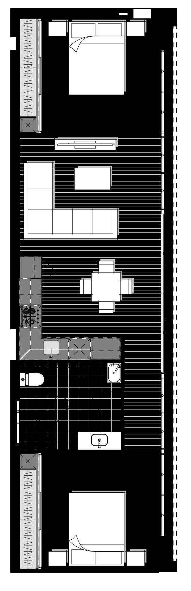 - Dishwasher recess with cold plumbing and single GPO
