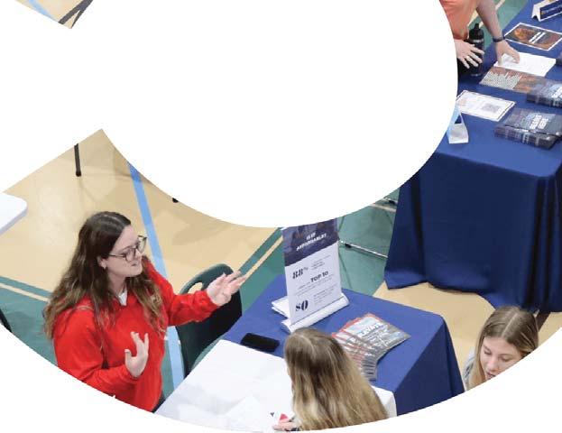 Across from my ofce is the College Counseling bulletin board which shows a map of the United States with pushpins and labels indicating where students have been admitted. Next to the map is a photo of each student in the Senior Class, and when she decides where to attend college, she places the university’s name and logo under her picture.