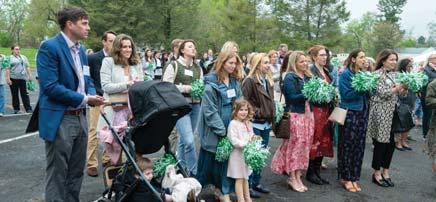 Friday, April 19, Foxcroft held a ceremonial groundbreaking for the new Mars STEAM Wing, the second of four phases in the School’s Building for Our Future campaign. The groundbreaking took place during the opening reception for Reunion Weekend when close to 150 alumnae, faculty, staf, trustees, and friends gathered just outside the current science wing. “Tonight we break ground on the Mars STEAM Wing,” announced Head of School Cathy McGehee. “You stand in its footprint so you can imagine what it will look like. It will house stateof-the-art facilities to support our Science, Technology, Engineering, Art, and Math programs. The building will have dedicated physics, biology, and chemistry labs, a large STEM classroom, a smaller STEM classroom, and three student project spaces. A community garden will be outside the bio and chem labs to strengthen outdoor learning.”